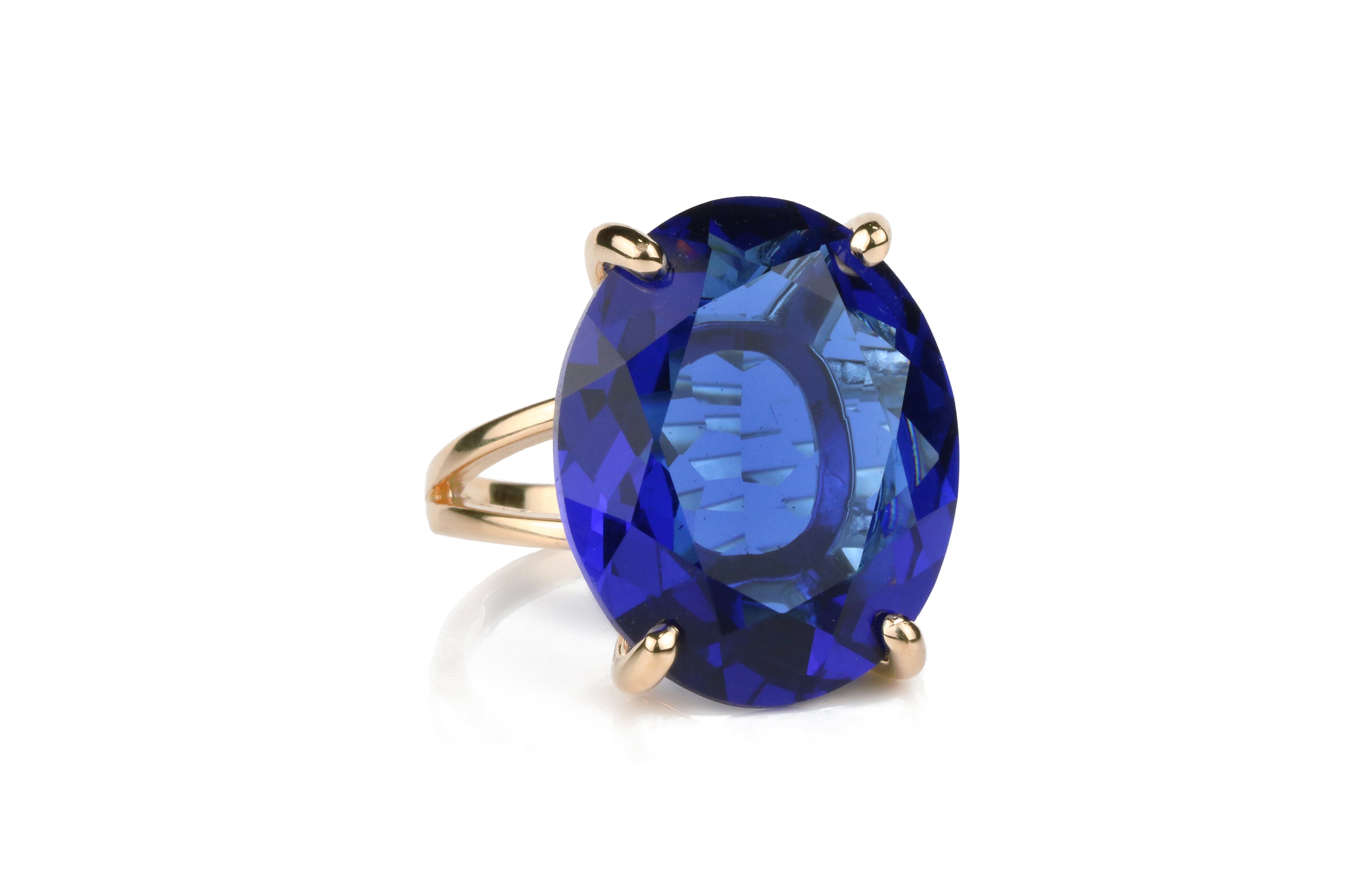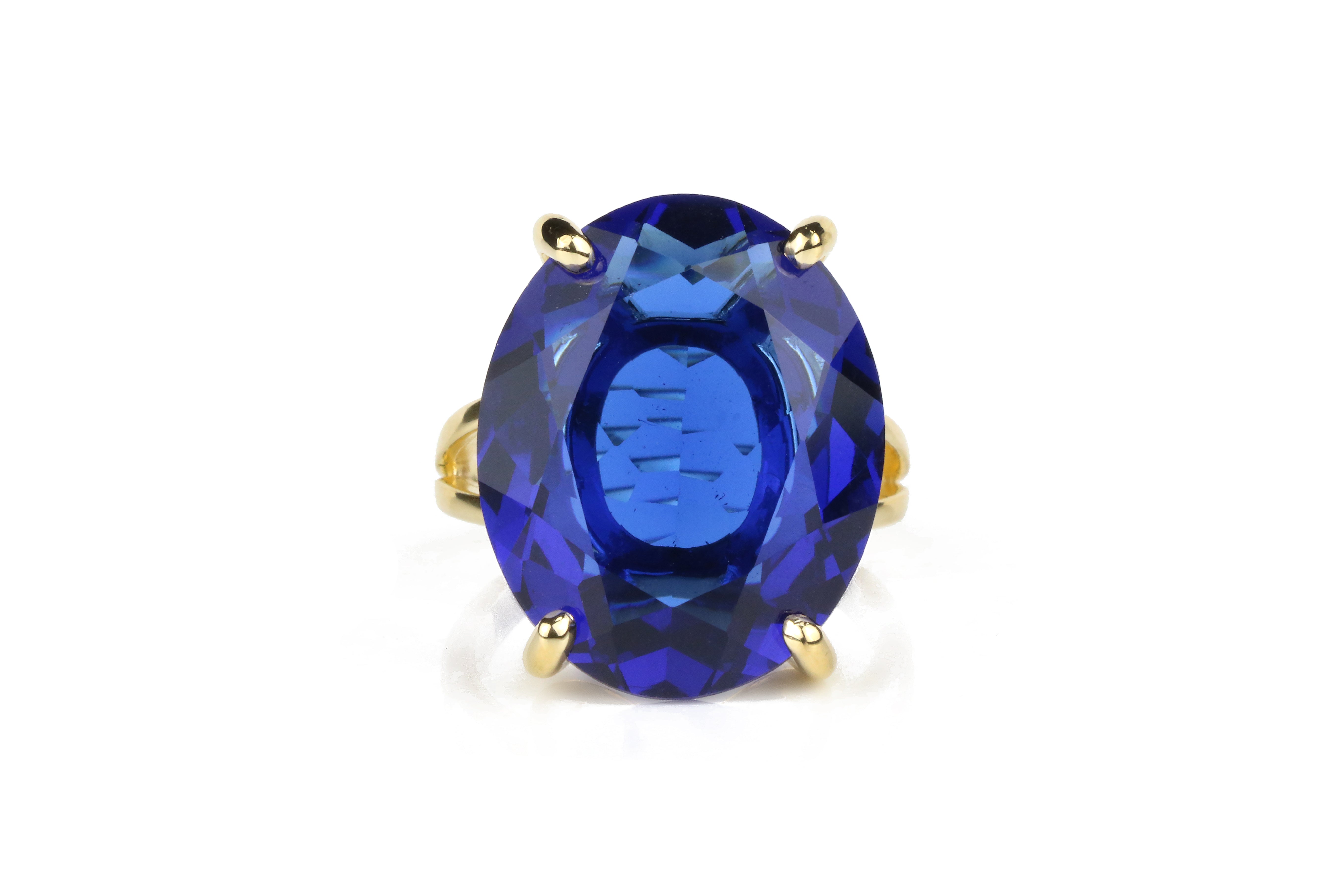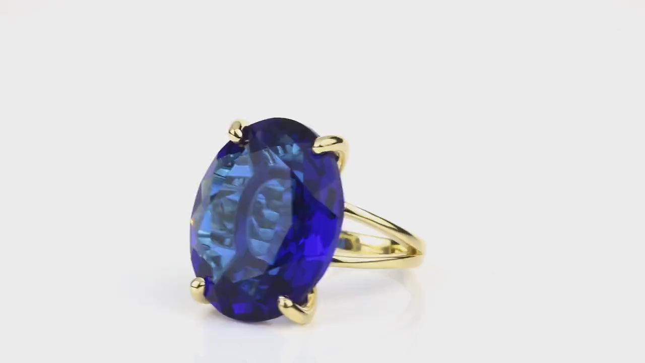 Handmade 14K Gold Statement Oval Sapphire Ring