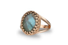 A piece from Anemone’s array of women rings that features an oval Labradorite set in 14k rose gold-filled band. Labradorite is a gemstone for protection against negativity. Gem rings for women with Labradorites as center gems are marked by their colorful feature that mimics the Northern Lights. A gem jewelry great to give as a gift to a loved one or for yourself.