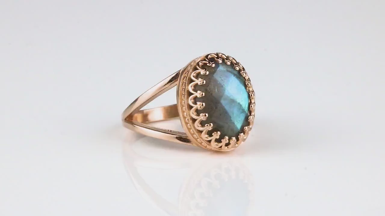 Labradorite Ring with 14k Rose Gold-filled Double Band