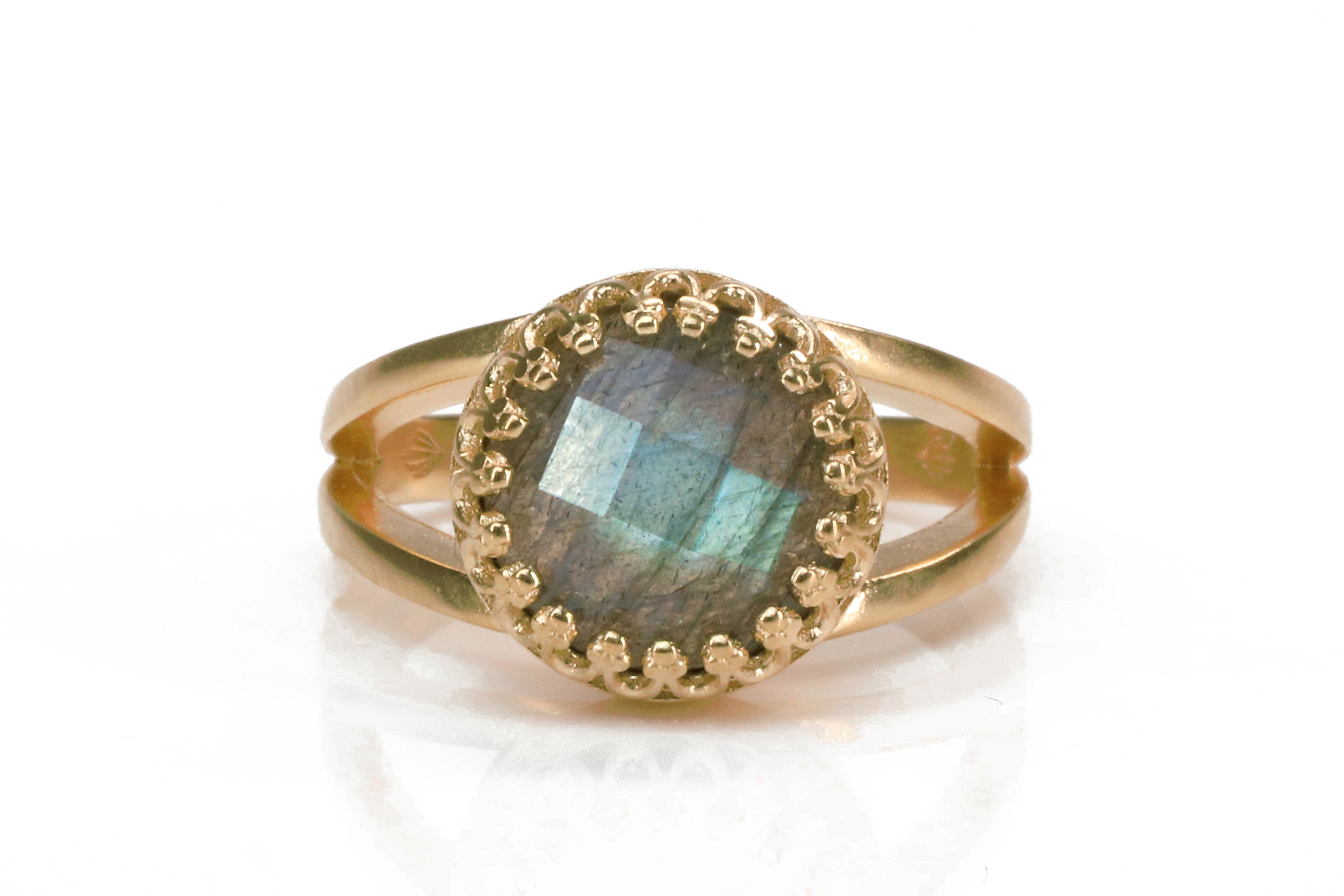 The perfect harmony of color and class, this handmade jewelry for women by Anemone’s features a round Labradorite set in a crown-inspired 14k rose gold-filled ring. Can be worn as everyday jewelry or boho jewelry for women with other stacking rings. This will also make a pretty gift girl jewelry for your sister or daughter or friend.