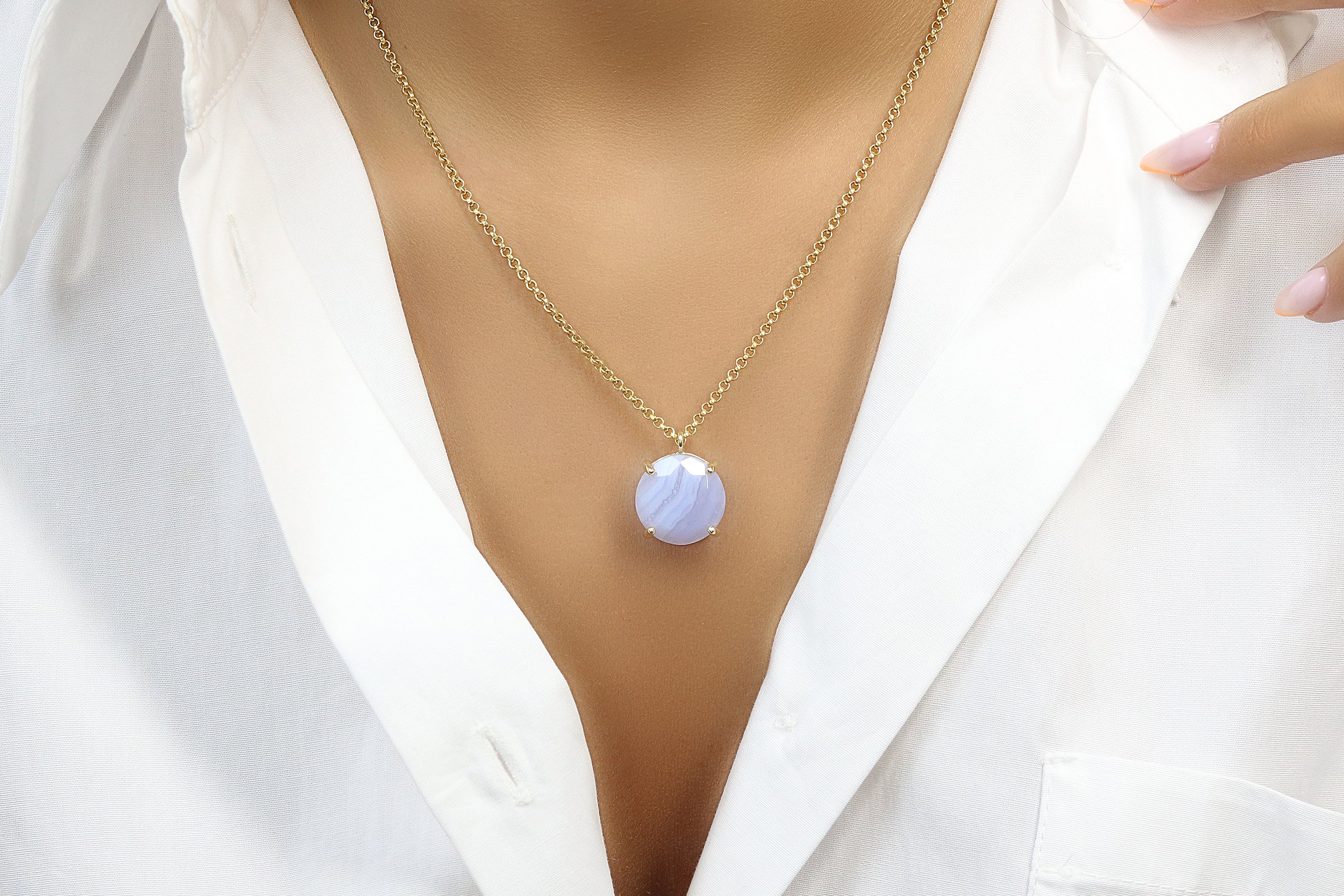 Absolutely adorable jewelry necklace that showcases a prong-set Agate stone. This fashion necklace will have a lovely accent on your collarbone. A jewelry necklace to elevate your style for special occasions or casual ones.