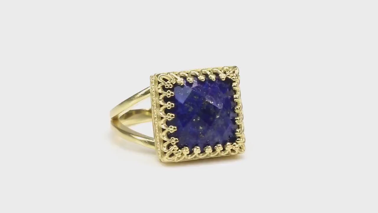 Stunning 12x12mm Deep Blue Lapis Lazuli Ring
