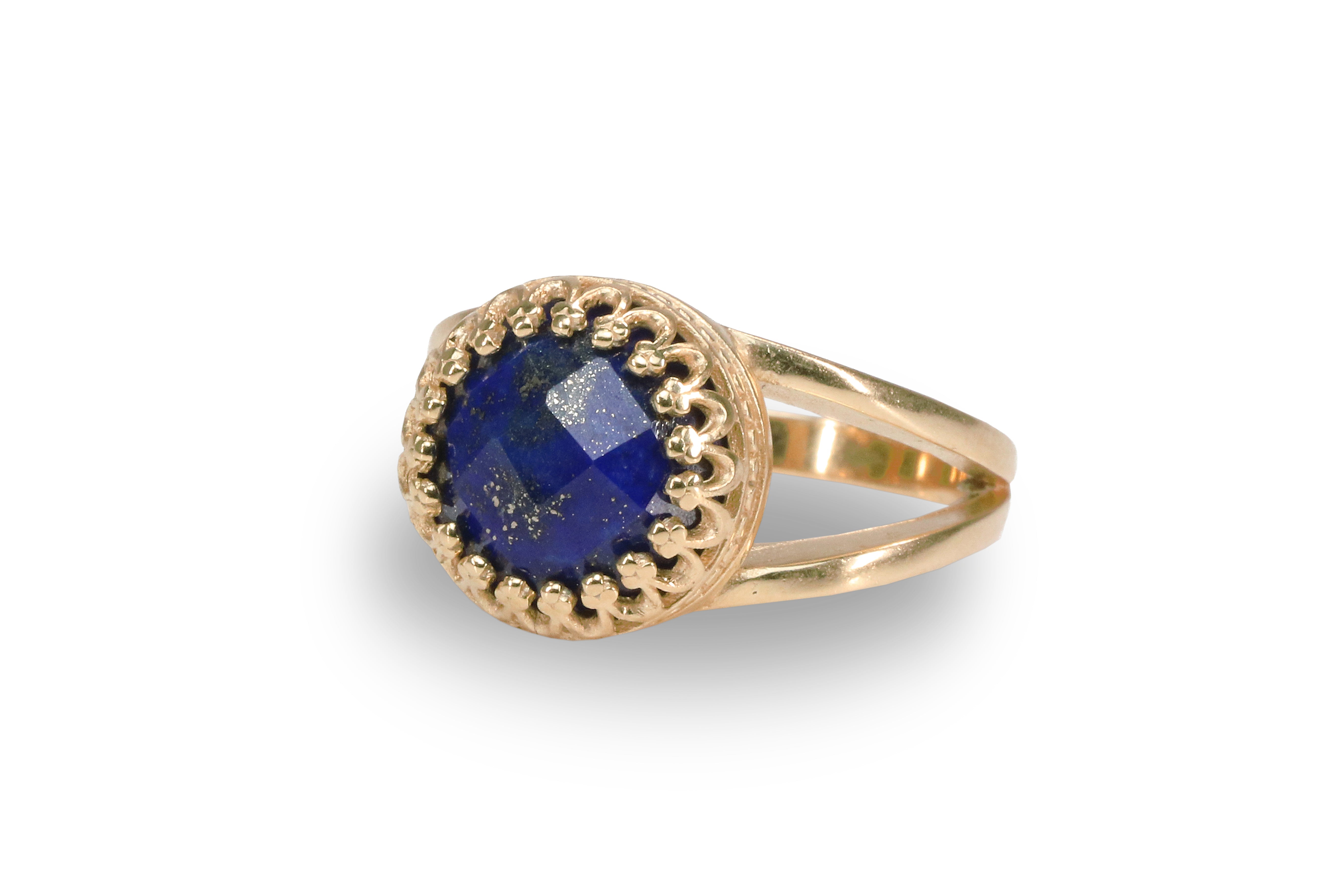 A rose gold ring from Anemone that flaunts a royal blue Lapis Lazuli sitting in a 14K rose gold-filled ring band. This Lapis ring is a combination of lovely gemstone color and the beautiful intricate design of the band. A September birthstone ring you or your special someone would definitely love to wear.