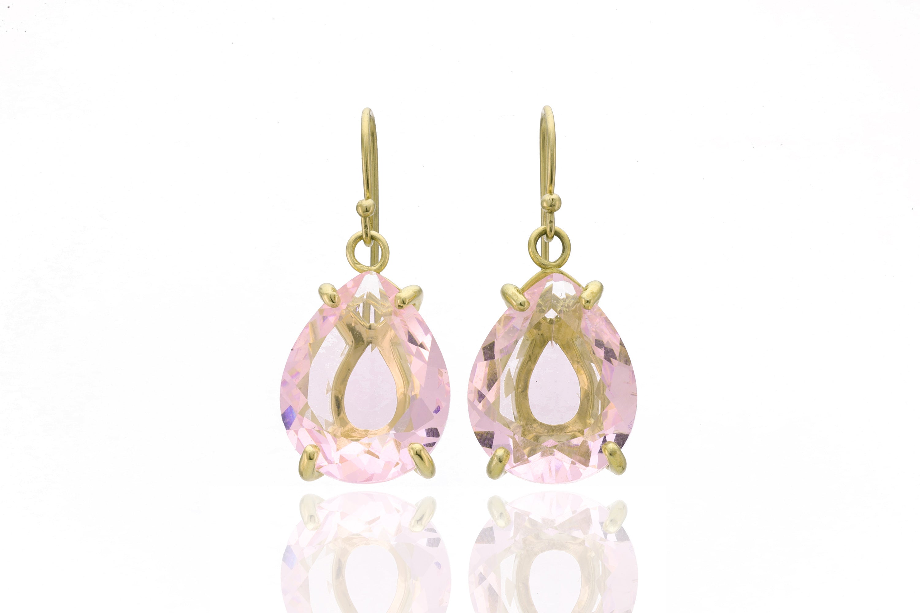 These long pear shape rose quartz gemstone earrings are the perfect accessory for any occasion. The beautiful rose quartz gemstone, which represents self-love and emotional healing, is set in an elegant and unique 4-prong design. These dangle earrings are available in both 18k gold vermeil and 14k gold filled, making them customizable to your preference. Handcrafted with care, these rose quartz earrings are sure to impress.