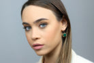 A striking pair of handmade jewelry earrings that boast Green Onyx stones. Intricate settings are showcased in these hook earrings. A pair of Onyx earrings to add to your style for special occasions.