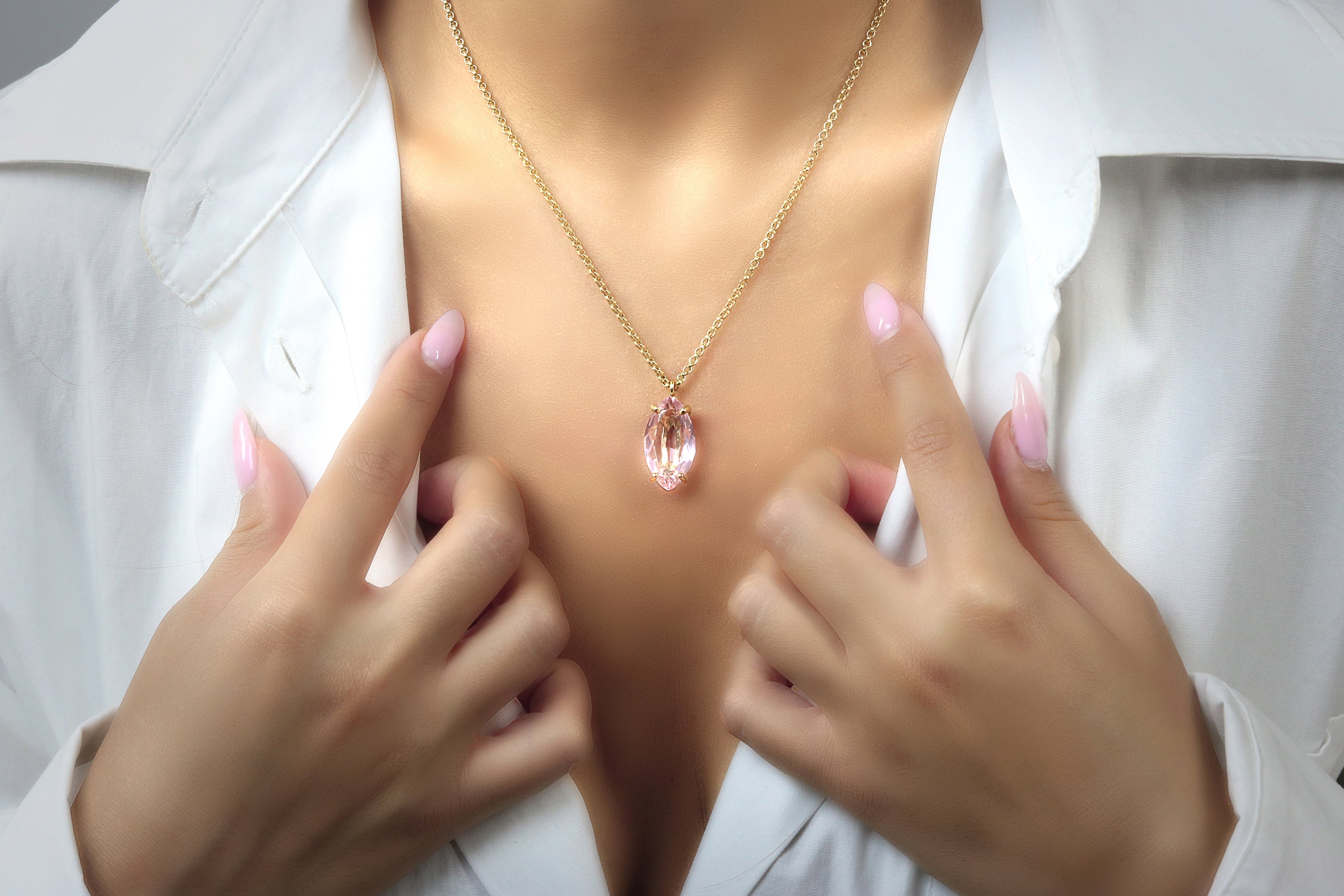 Symbolizing love and feminine beauty, this simple necklace features a charming Rose Quartz pendant. A fine choice for a bridal necklace, everyday fashion necklace or a lovely treat for someone dear. This Quartz pendant necklace is a must-have.