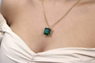 Lustrous 14k Yellow Gold Square Emerald Necklace