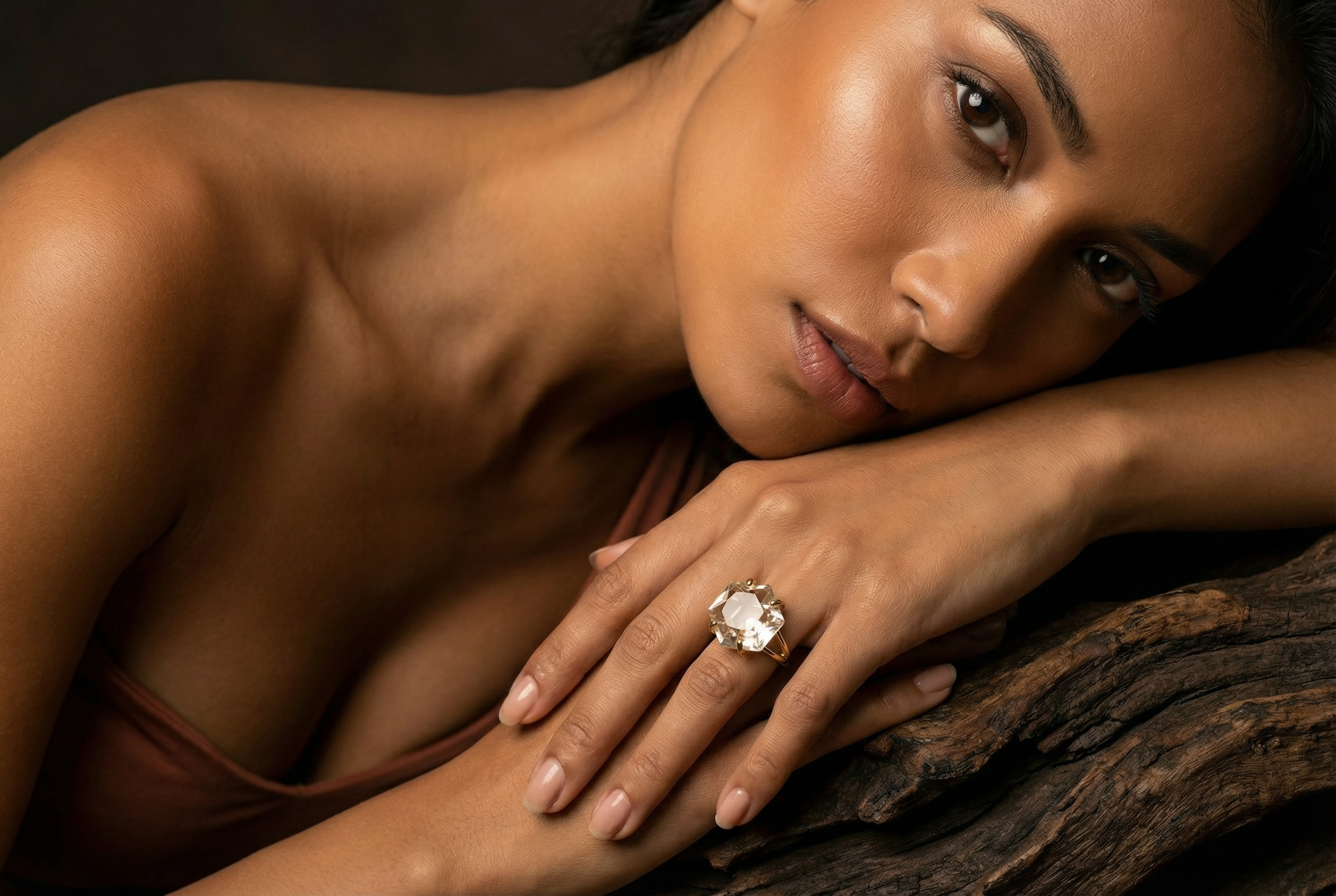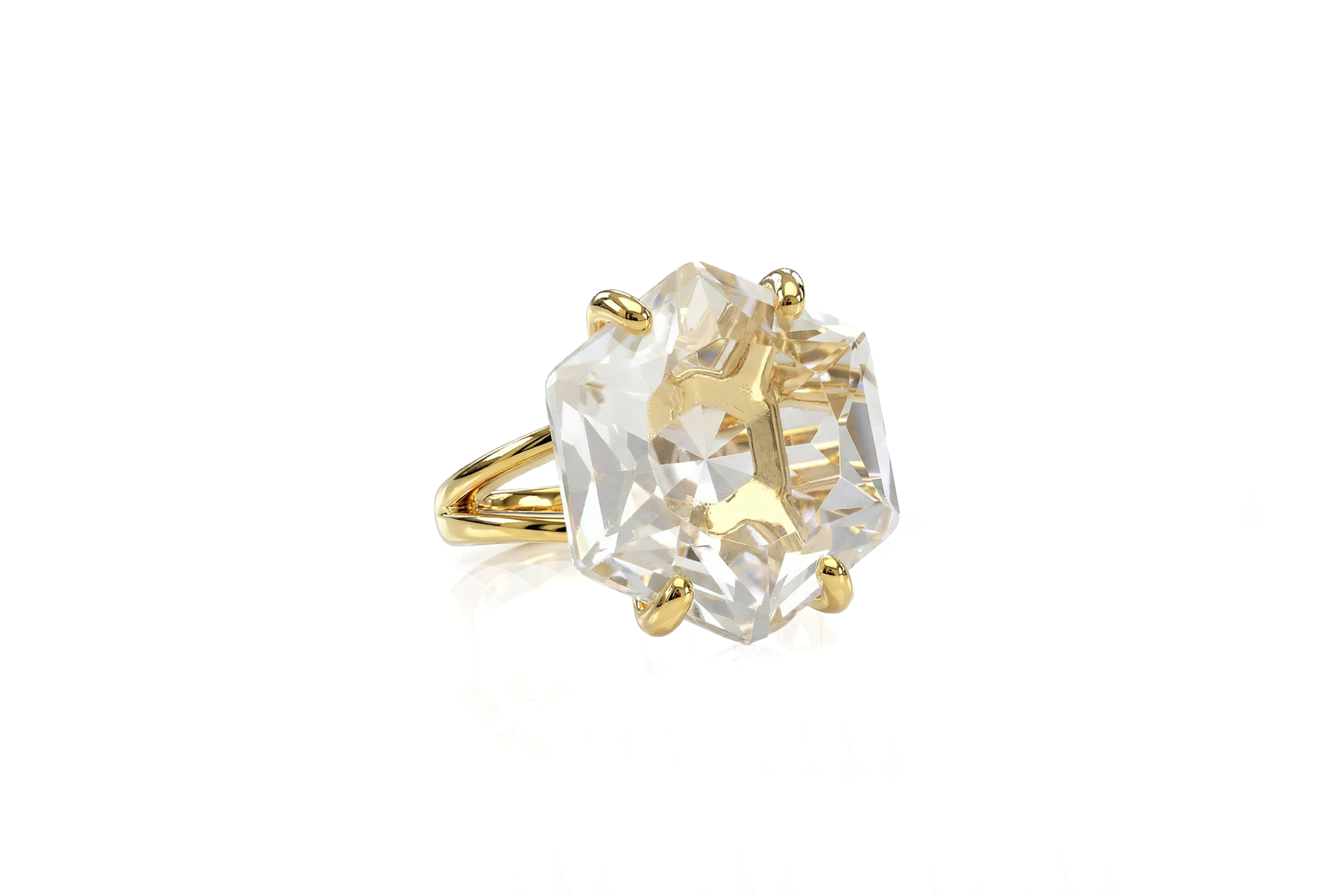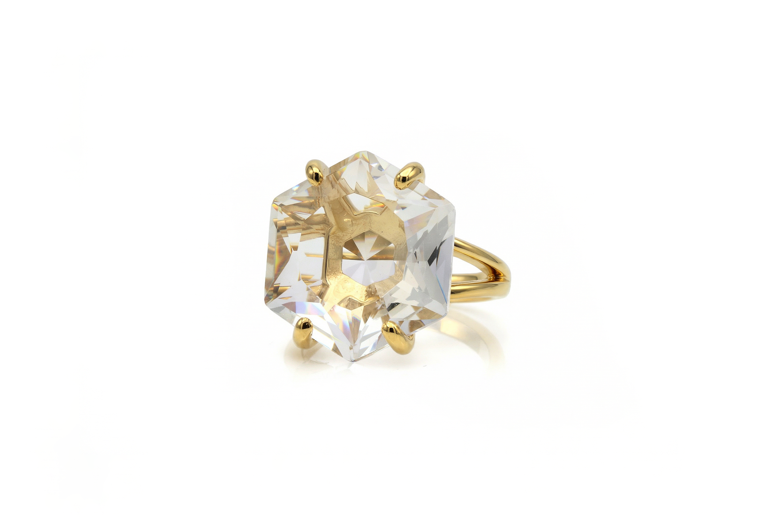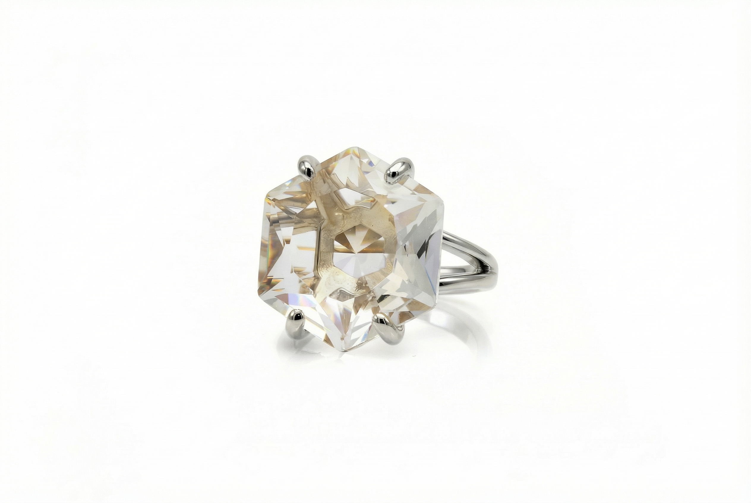 Lustrous Hexagon Cut Crystal Quartz Ring