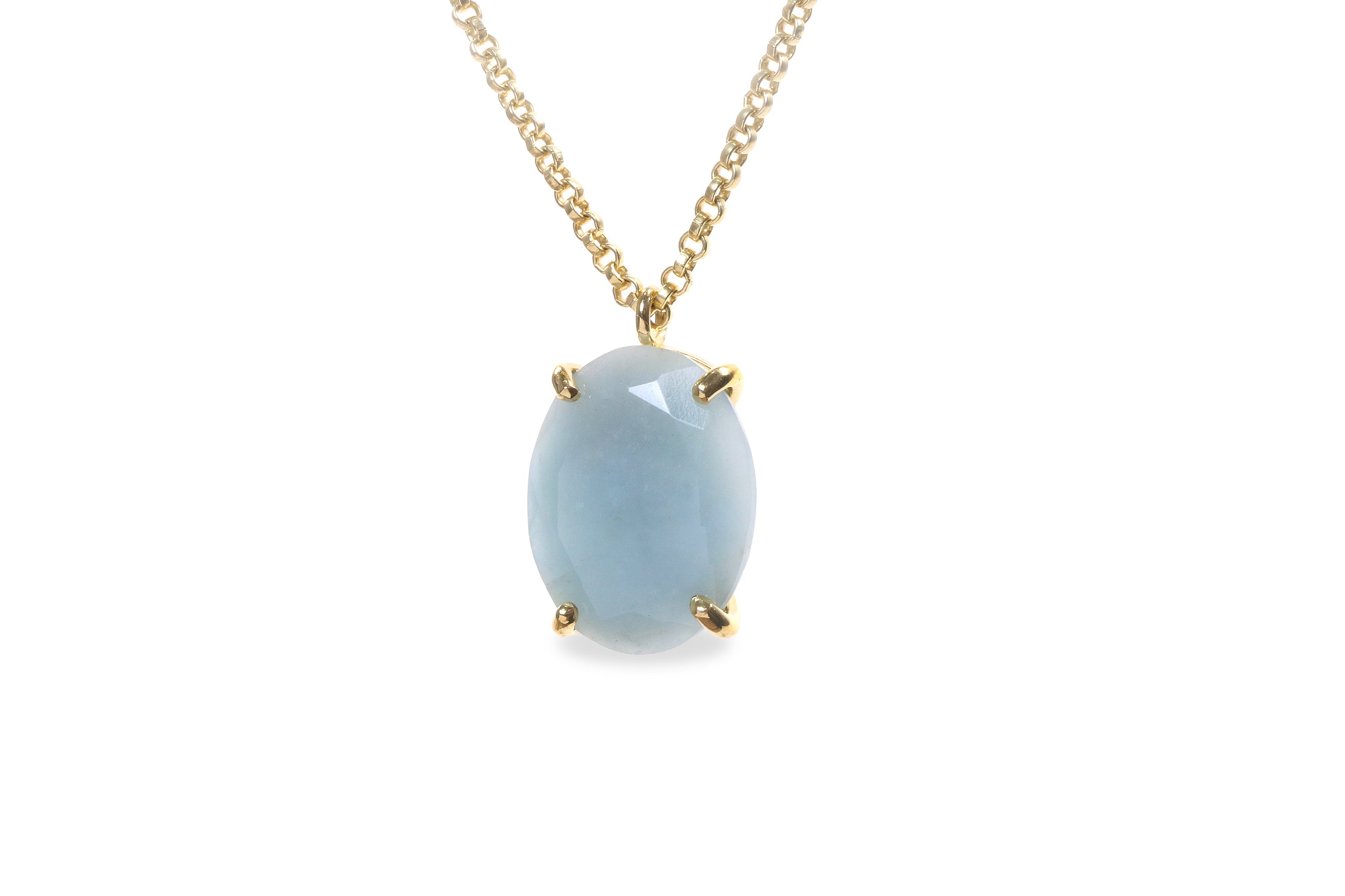 Lustrous Oval Aquamarine Necklace in 14k Gold
