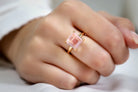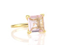 Love at first sight - this crystal jewelry will steal your heart. A handmade Rose Quartz ring with a classic square-cut, solitaire stone to adorn the high polish gold finish. A charming choice for a styling ring, promise ring or engagement ring.