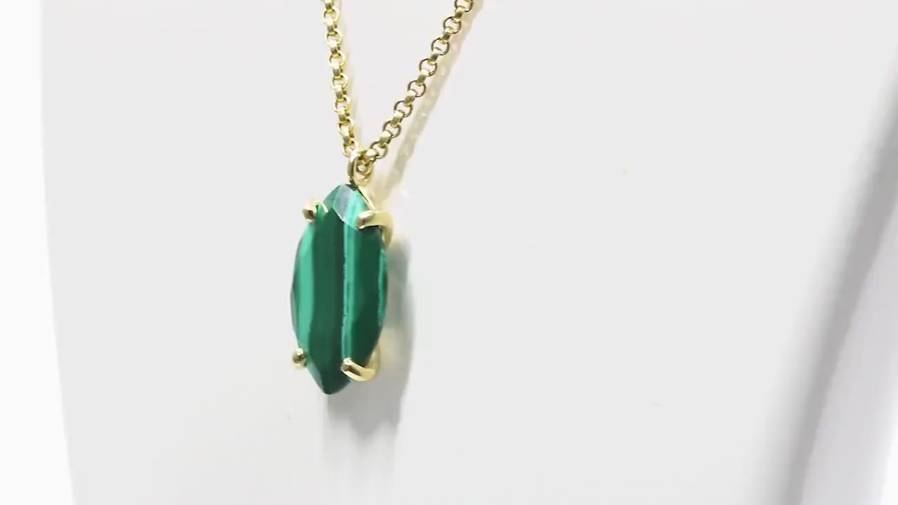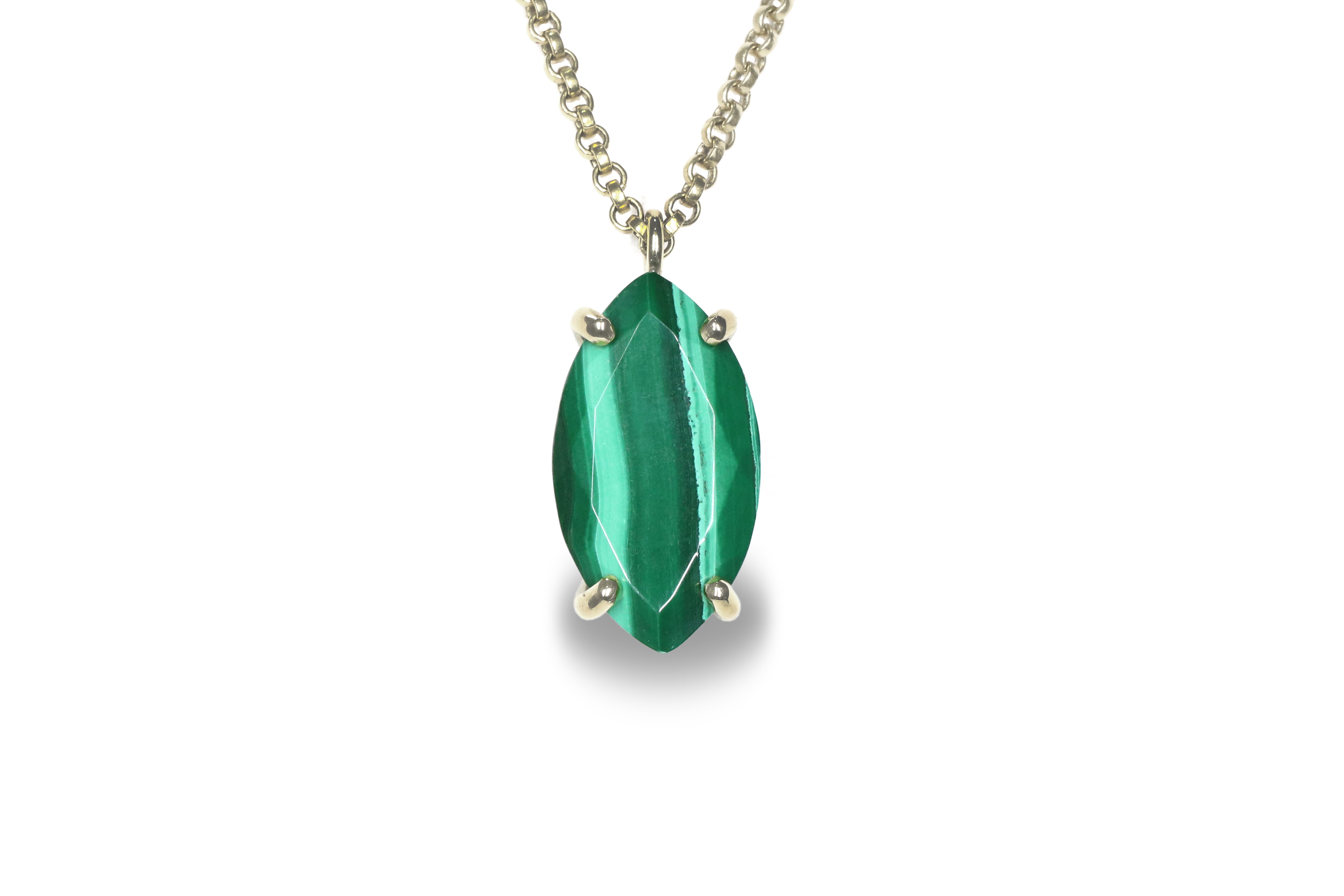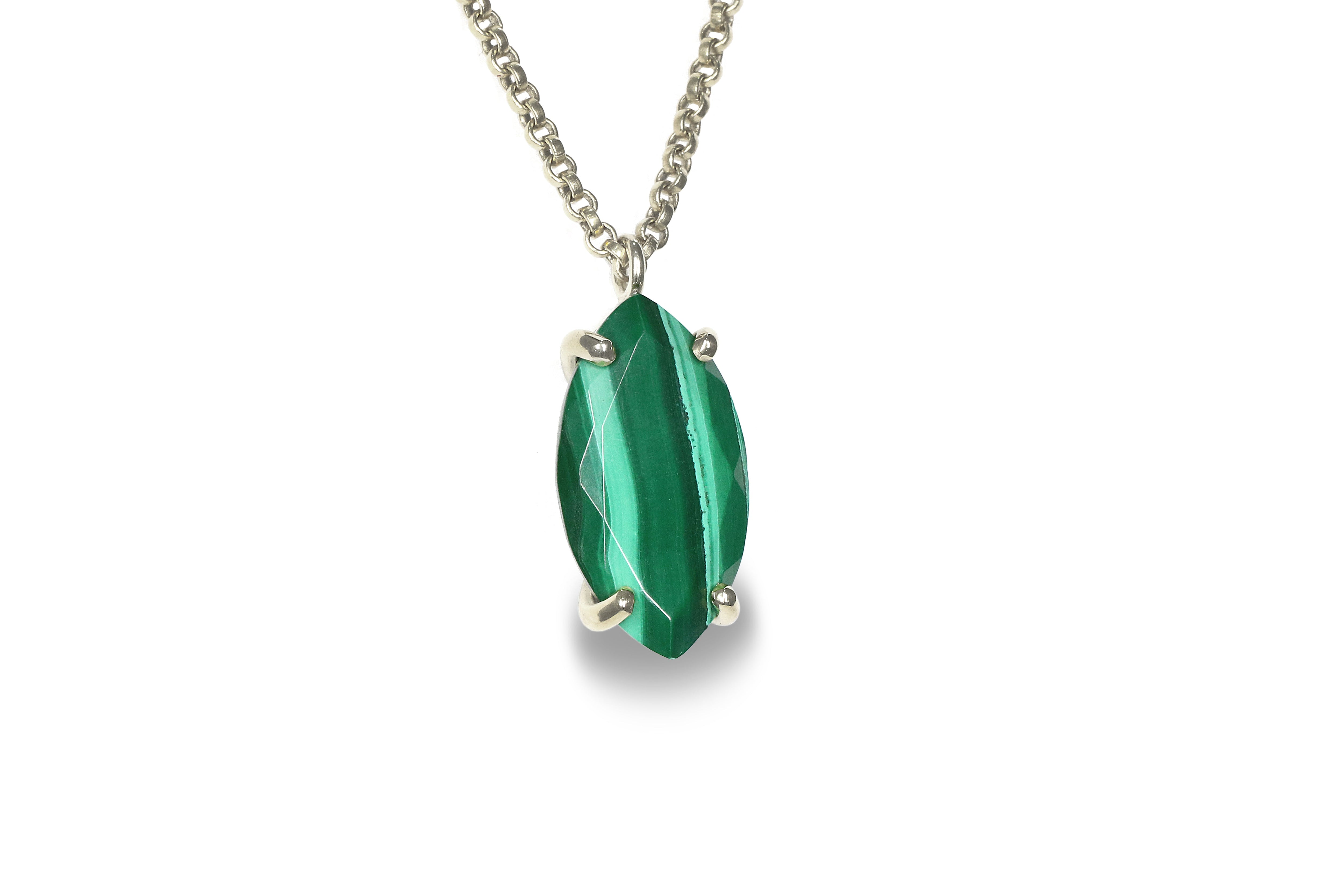 A single marquise, banded Malachite in stunningly featured in this gemstone necklace. This Sterling silver necklace with an elegant design that will stay classic and timeless. Lush pendant necklace to exude glamour for every special occasion.