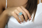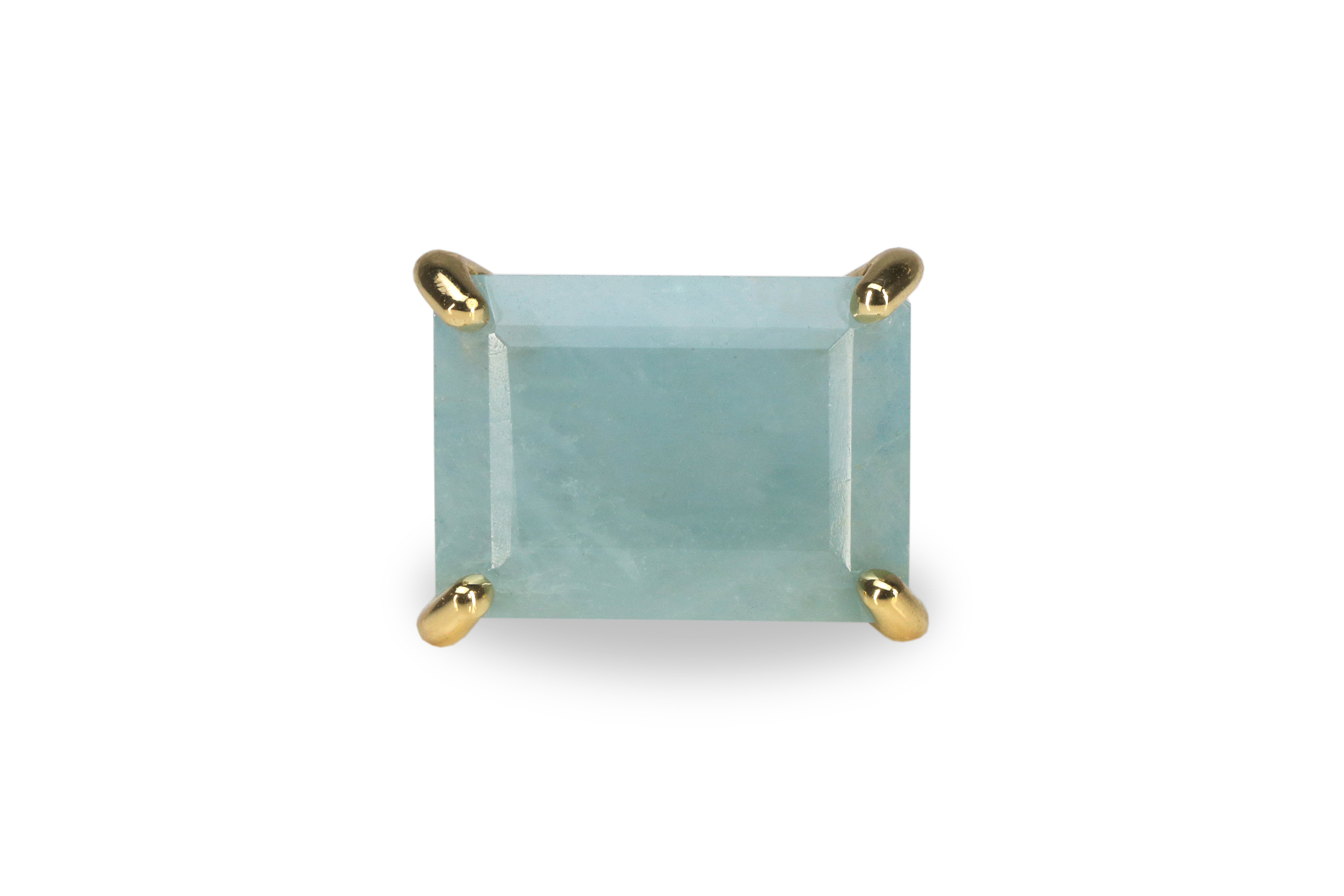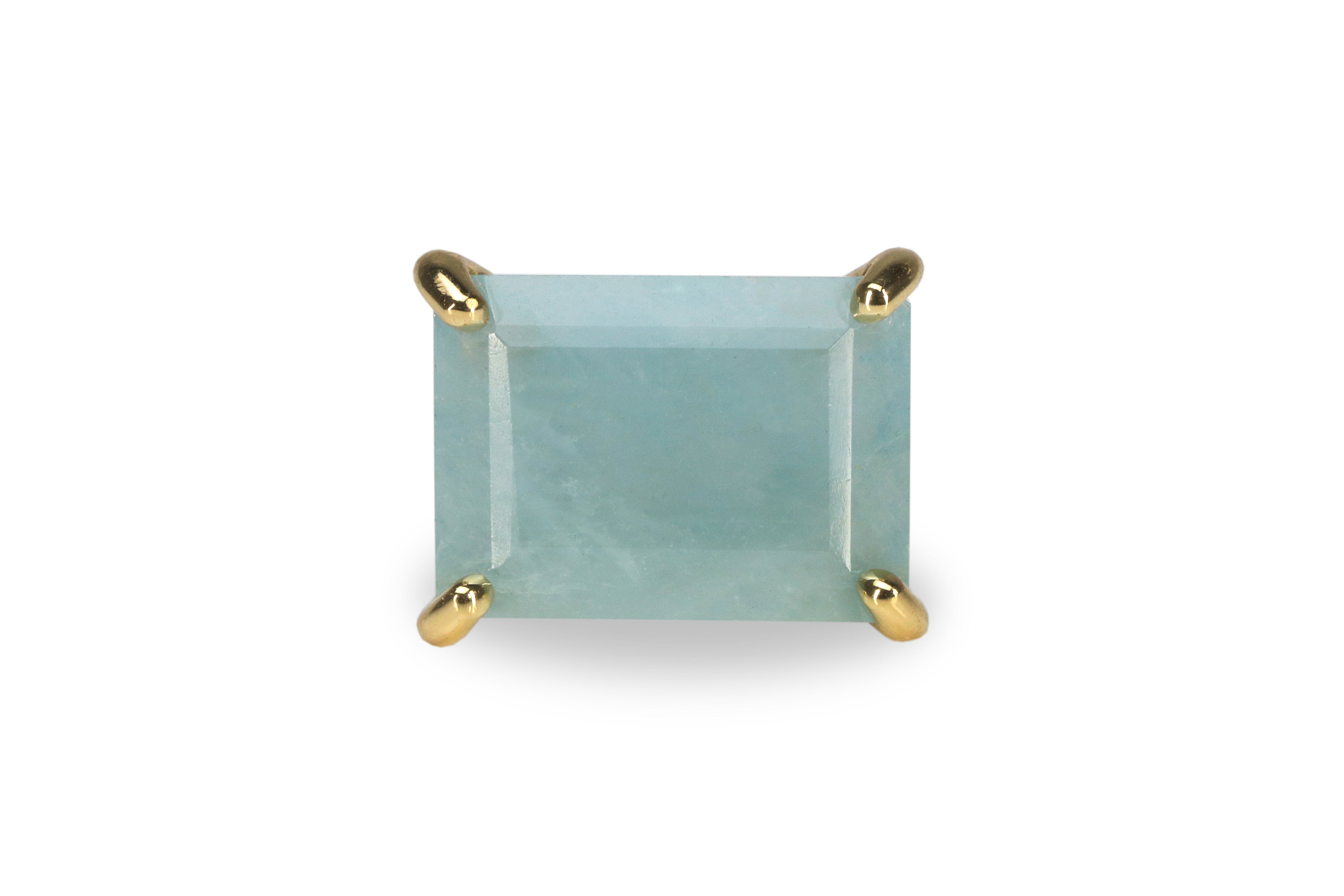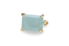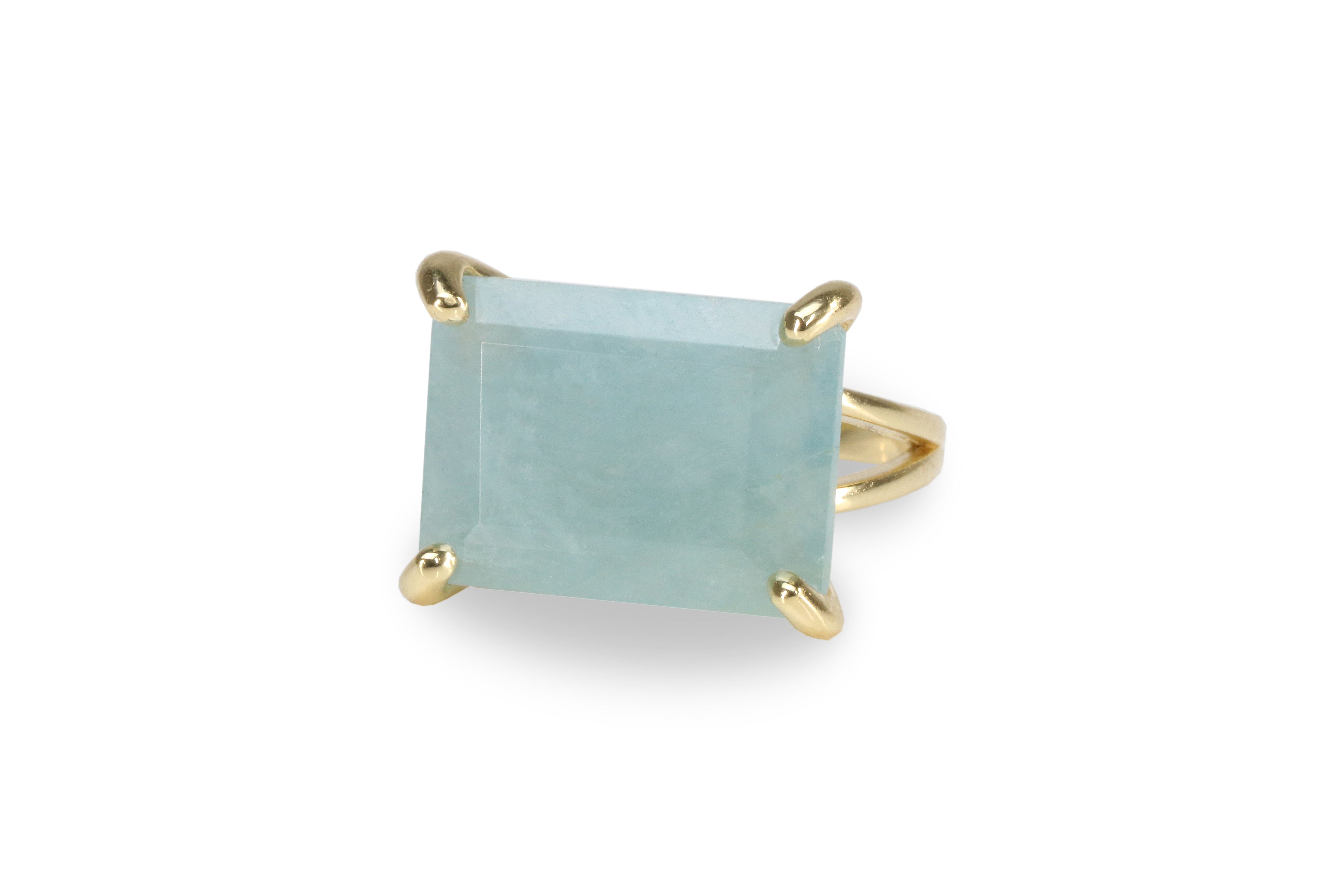 This 14k gold vermeil aquamarine ring showcases a luminous rectangular gemstone in a unique horizontal setting. The soft sky-blue tone of the aquamarine pairs beautifully with the warm gold, creating a serene and elegant aesthetic. Perfect as a March birthstone ring or a delicate statement piece, it embodies calmness, purity, and timeless sophistication.