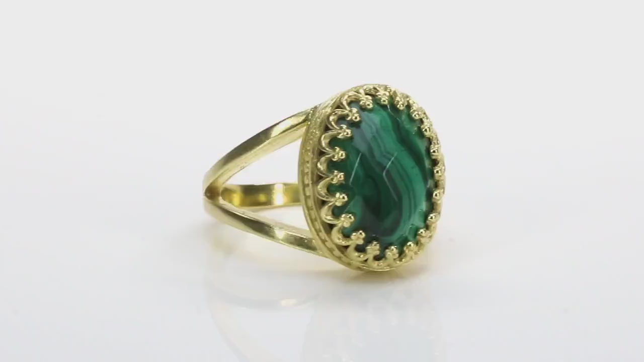 Elegant Malachite Ring with 14K Rose Gold-filled Band
