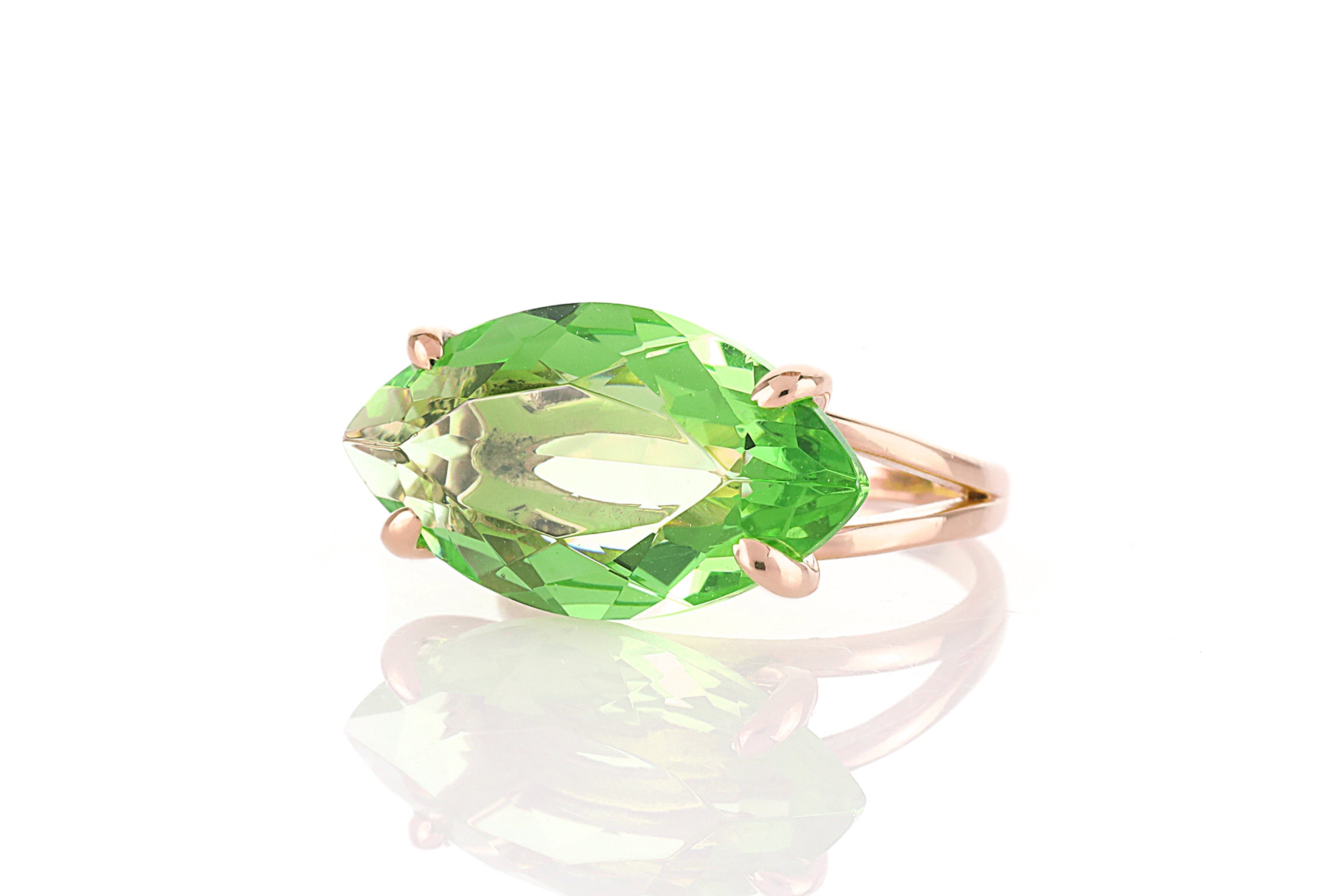 This sterling silver ring features a vibrant marquise-cut Green Tourmaline that delivers a bright, glowing green sparkle. The elongated marquise shape enhances the stone’s brilliance, while the polished silver band provides a clean and modern finish. Designed for everyday wear, the secure prong setting keeps the gemstone elevated and eye-catching. Perfect as a meaningful gift or a standout addition to any jewelry collection, this piece is crafted with attention to detail to showcase the stone’s natural beauty.