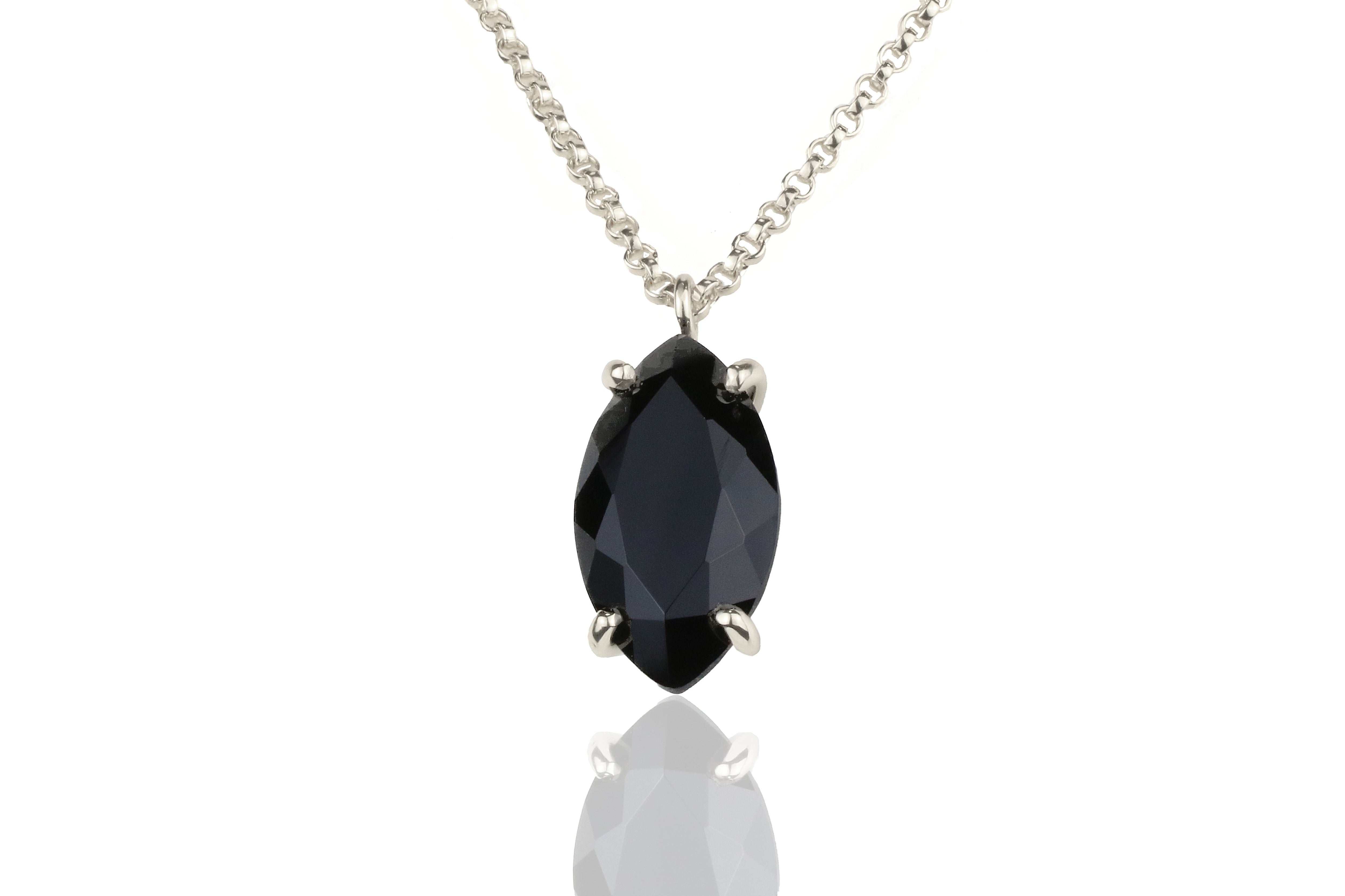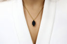 A bold and sophisticated handmade jewelry that centers a marquise black Onyx stone. This gold necklace is gorgeous to wear with a dress or a button-down. A simple yet classic Black Onyx necklace to add to your wardrobe.
