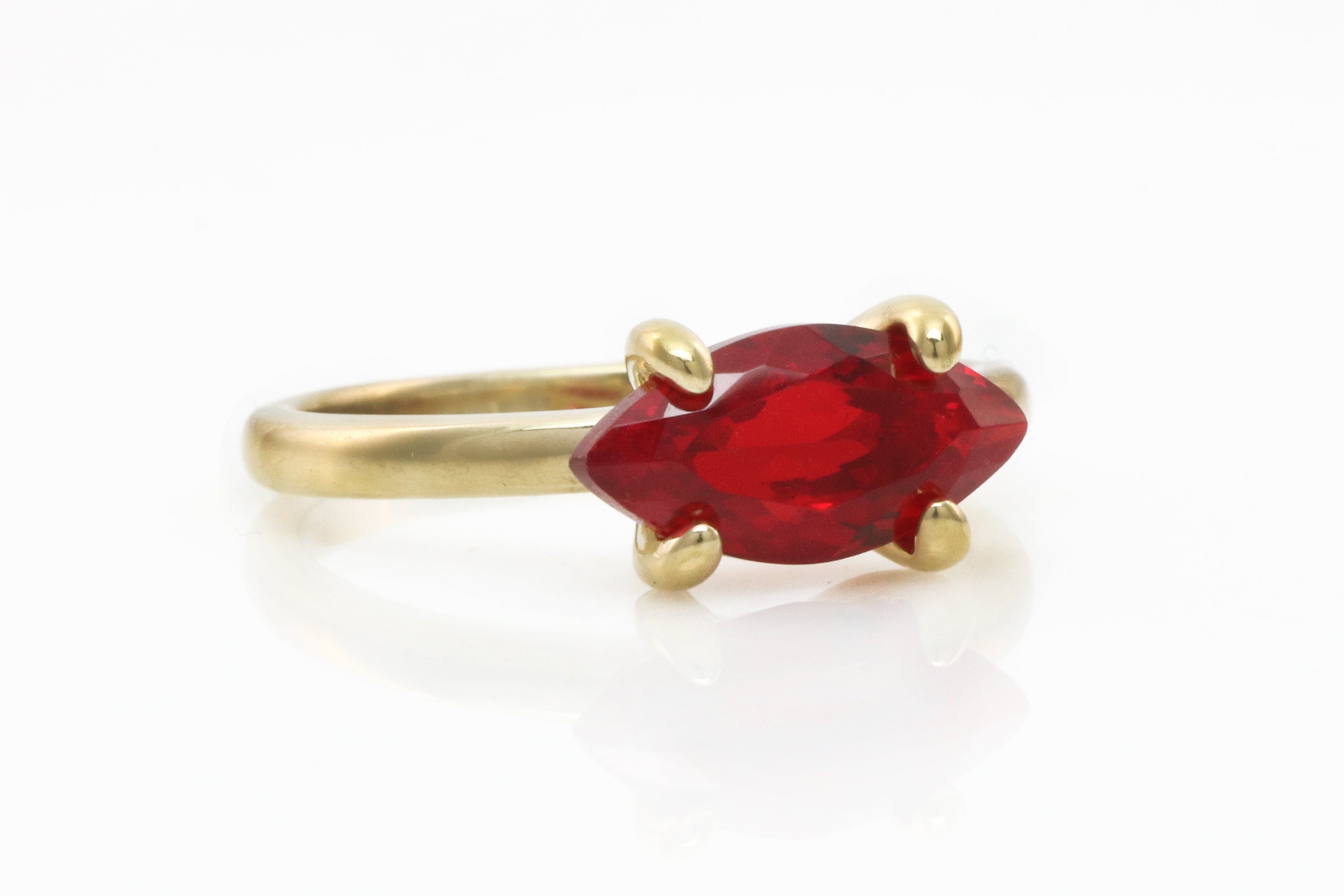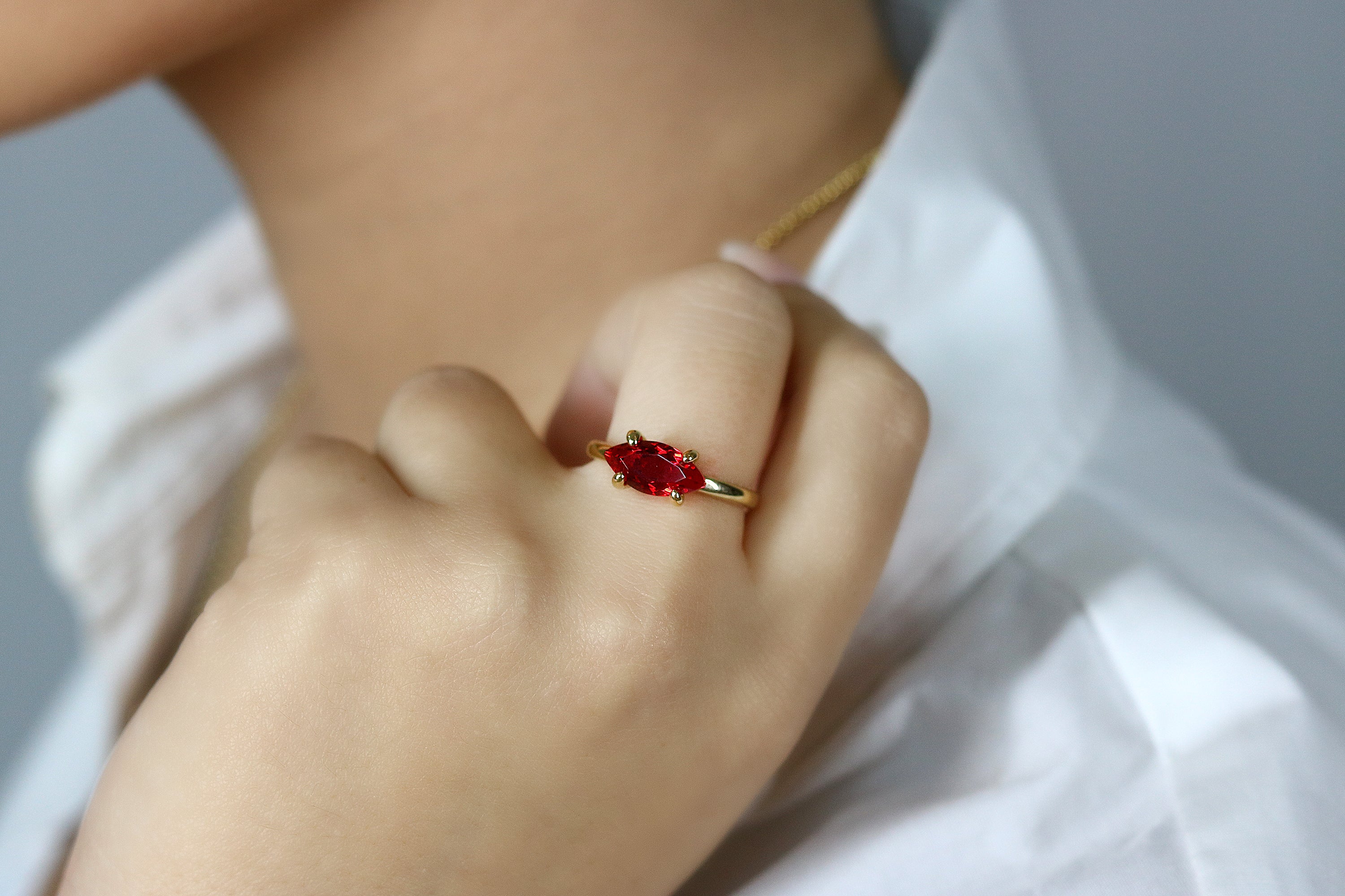 You will never get enough of the beauty of this Ruby stone ring. A handcrafted, simple yet stunning July birthstone ring that will look great for any occasion. Wear it on its own or stack it with other dainty gold rings to create your signature looks.