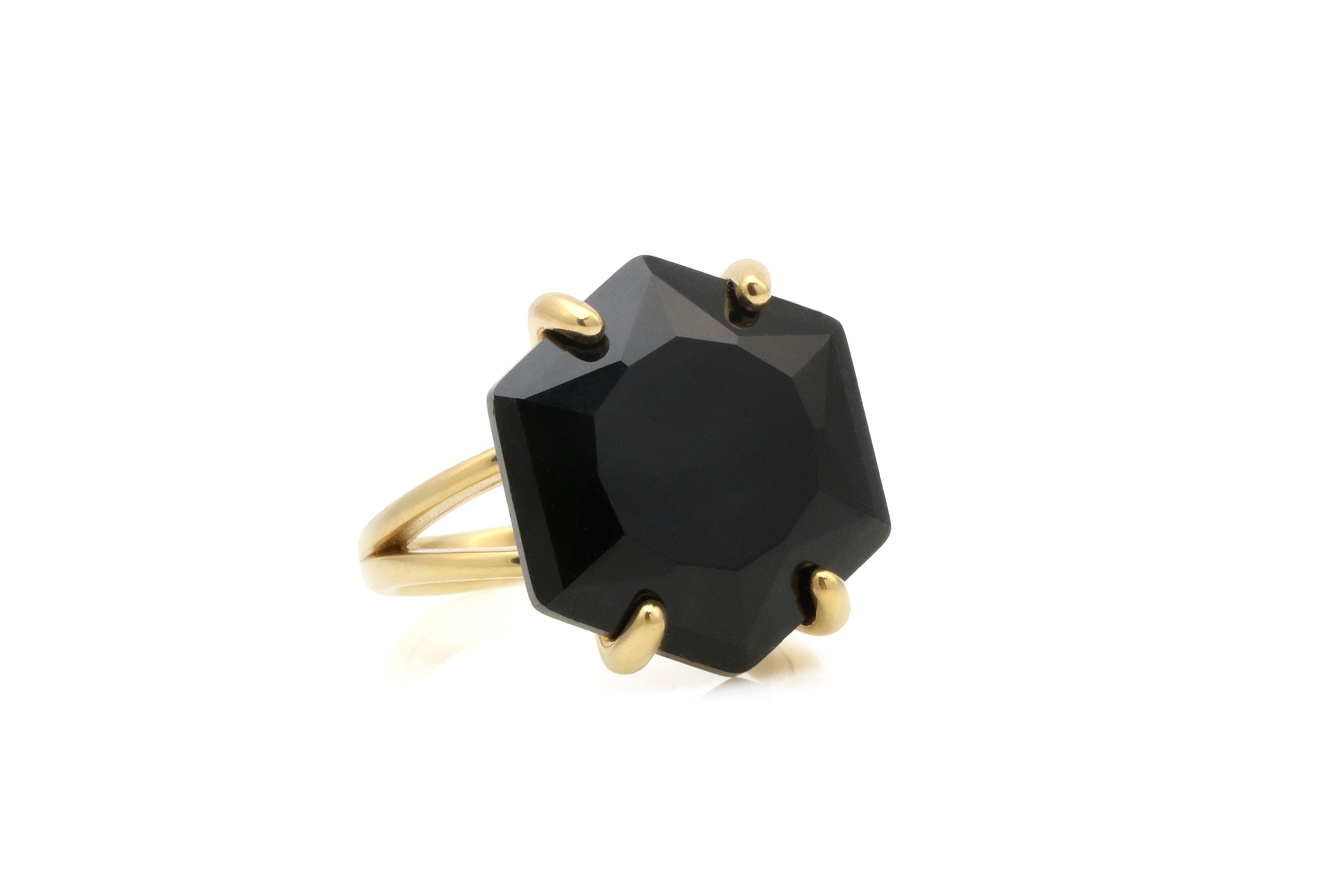 Modern Hexagon Black Onyx Ring