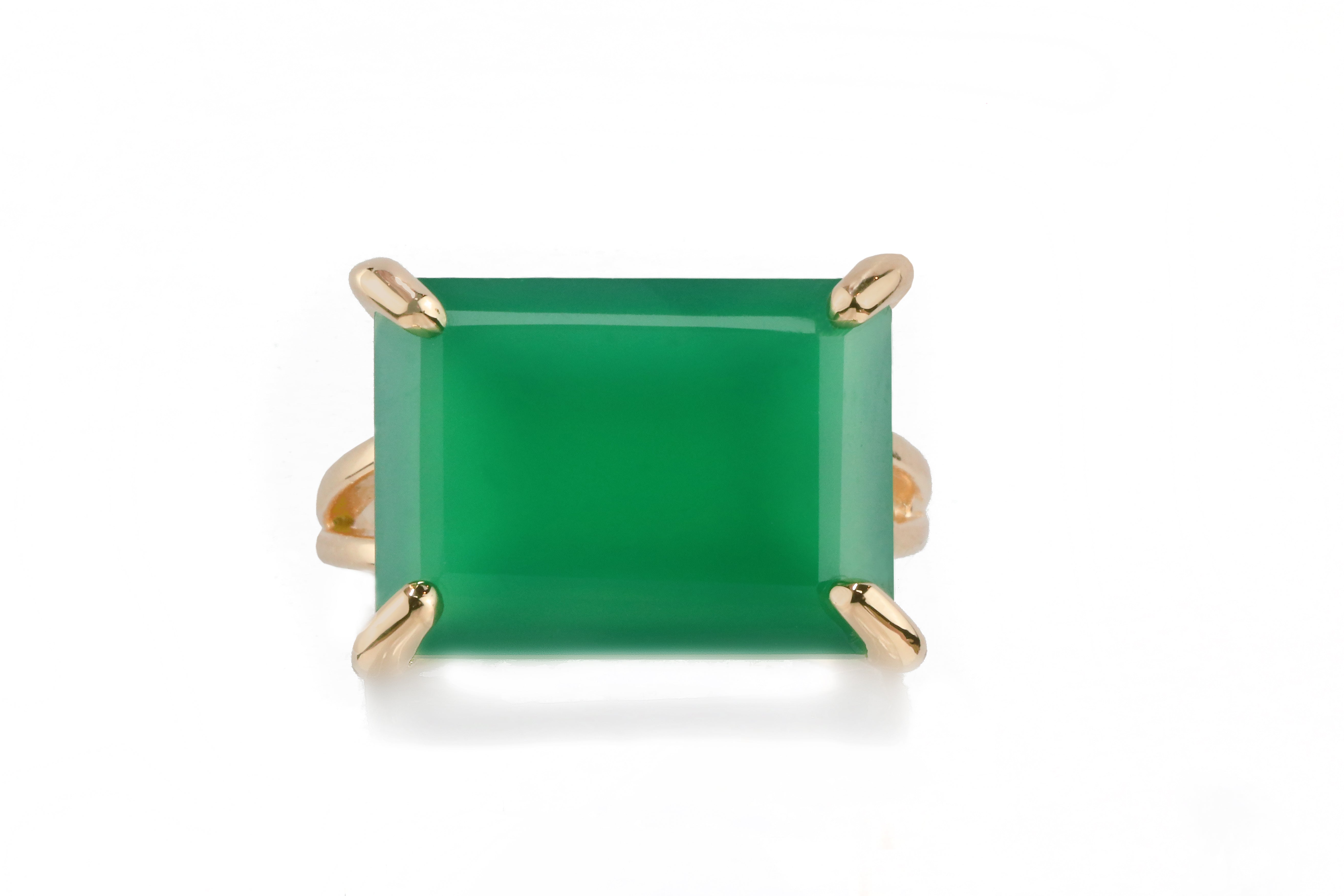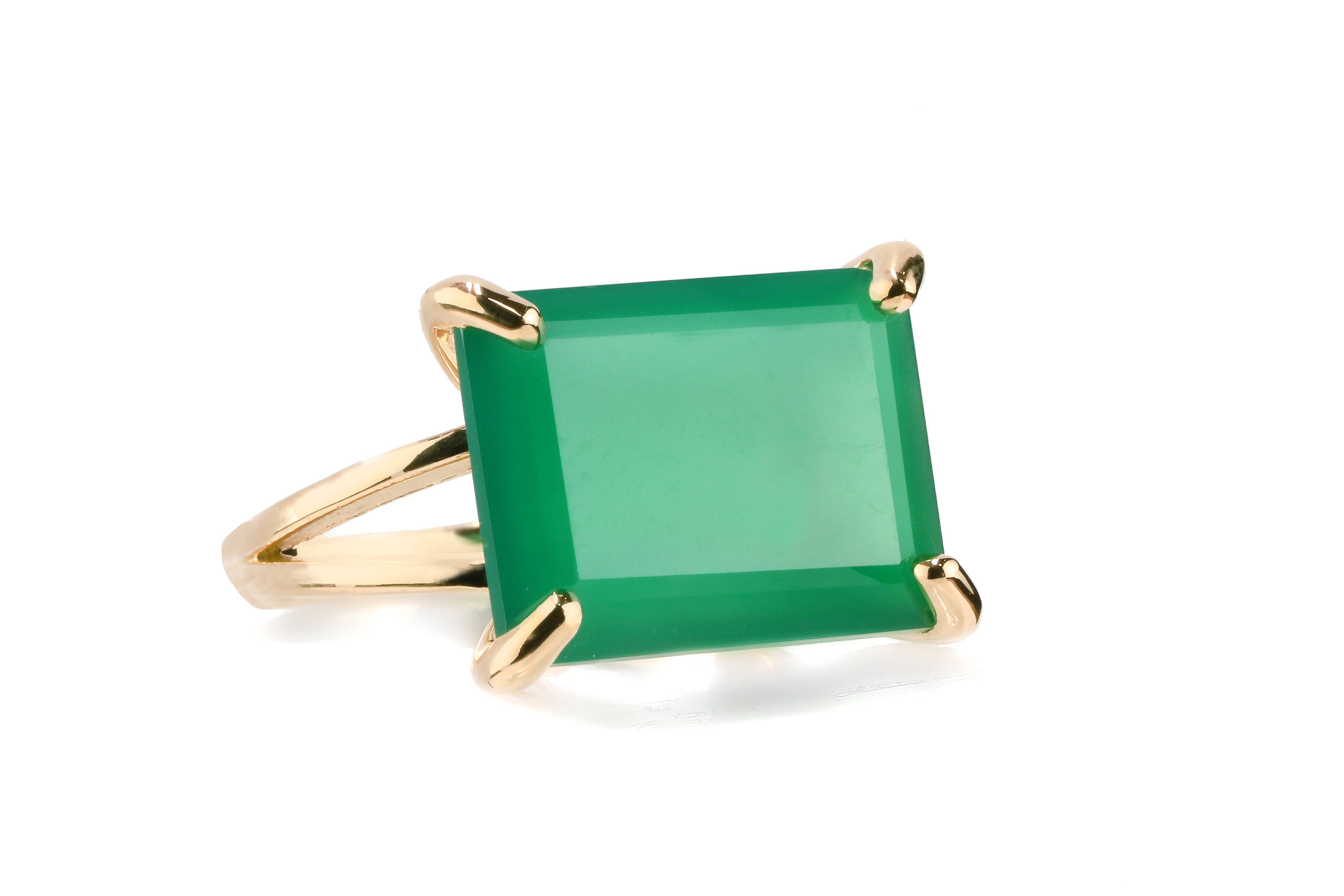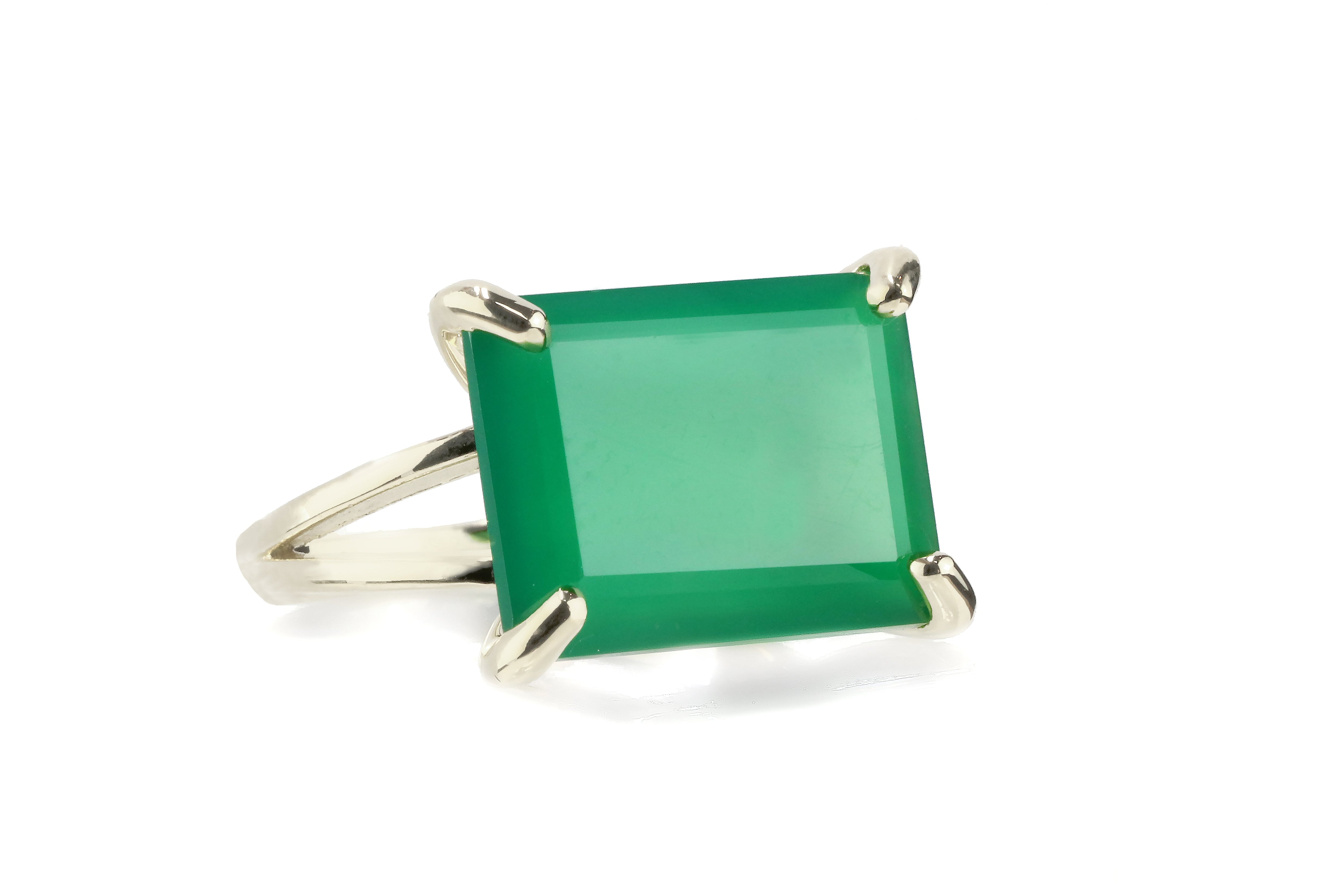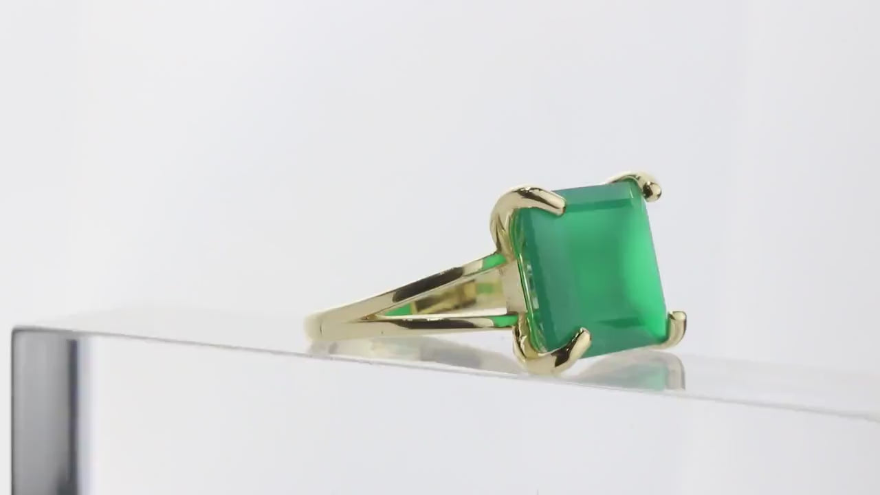 Natural Emerald Cut Gemstone Green Onyx Ring