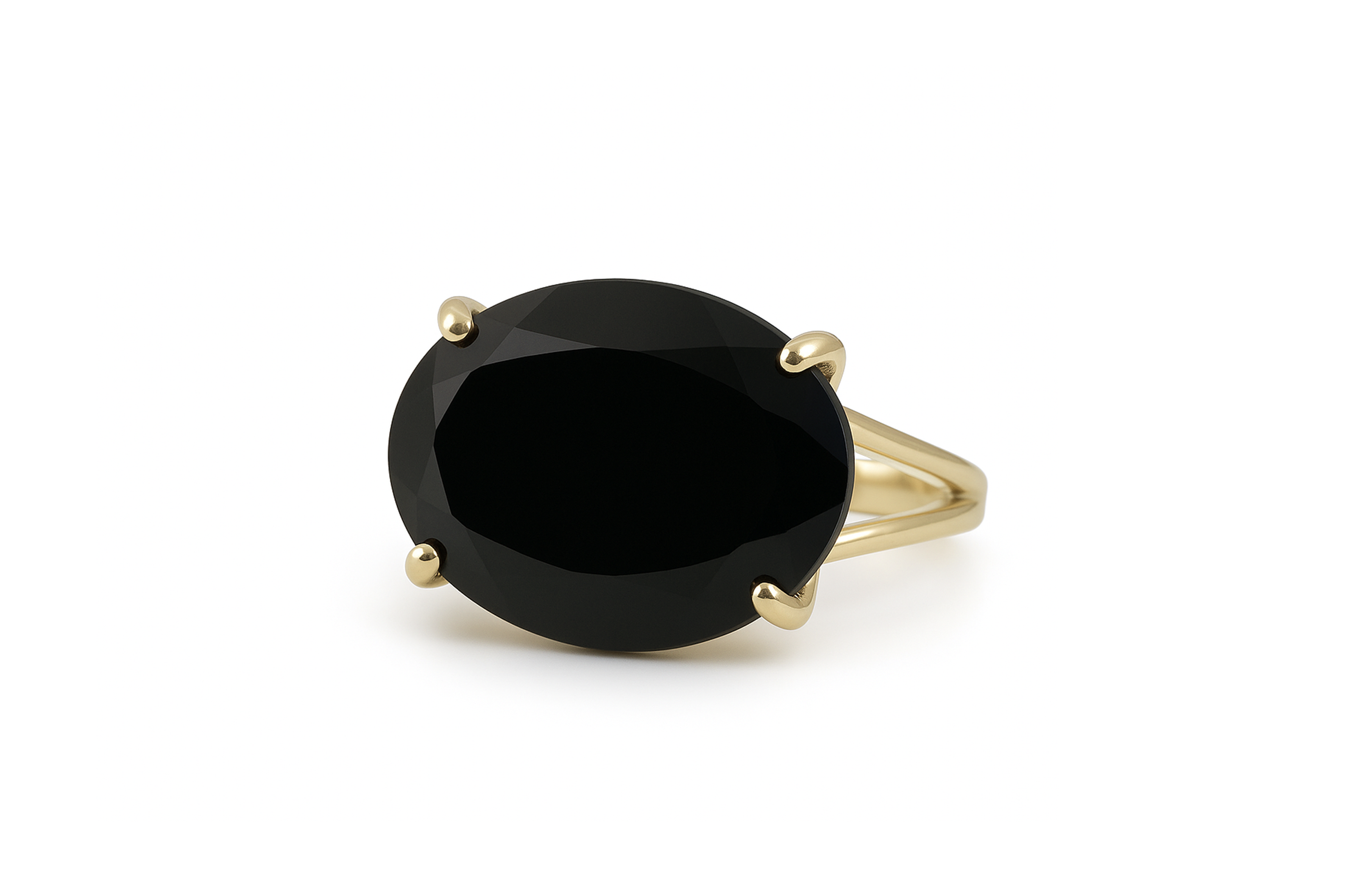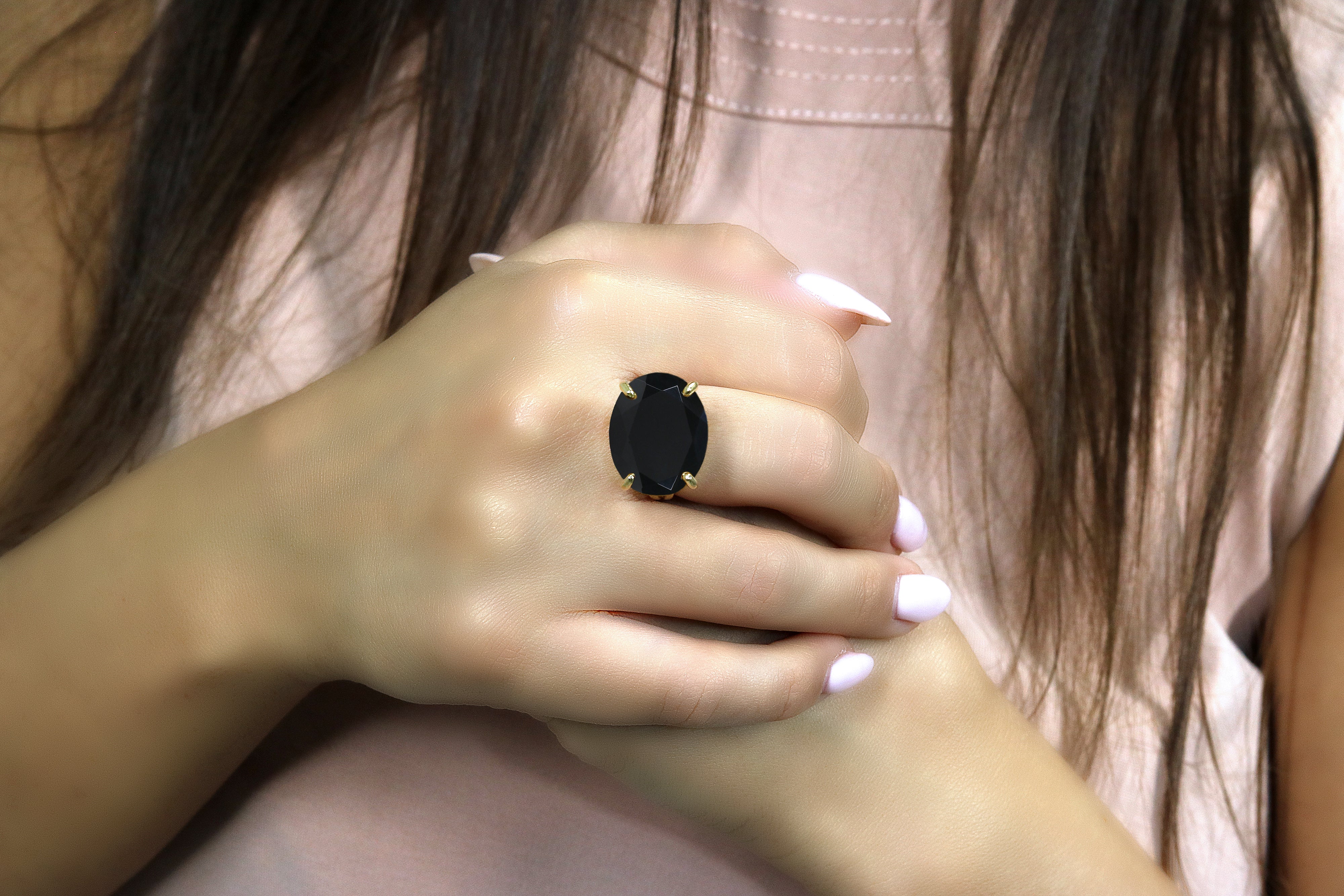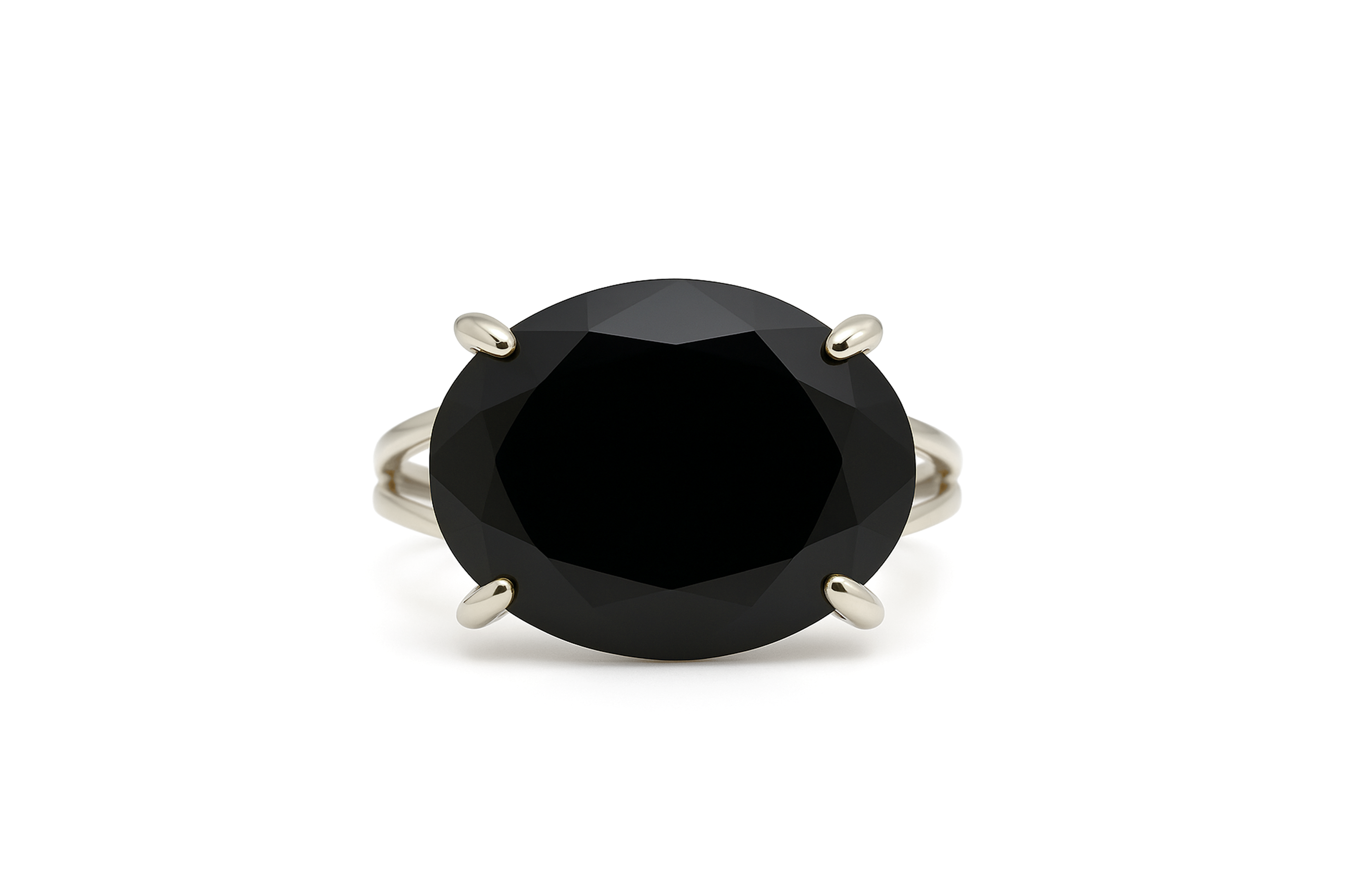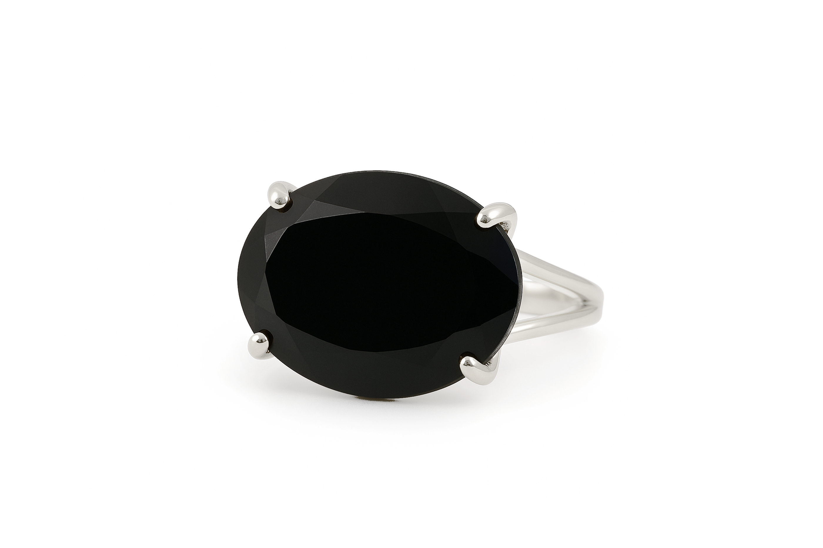 This sterling silver black onyx ring features a faceted oval gemstone set in a classic prong design. The deep black stone adds bold elegance, while the polished 925 silver band provides timeless appeal. Designed as a cocktail-style statement piece, it is versatile enough for everyday wear or special occasions. Handcrafted with care, this gemstone ring is perfect for women who love sophisticated jewelry and makes a thoughtful gift.
