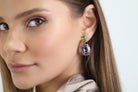Oval Green Tourmaline and Oval Tanzanite Gold Earrings