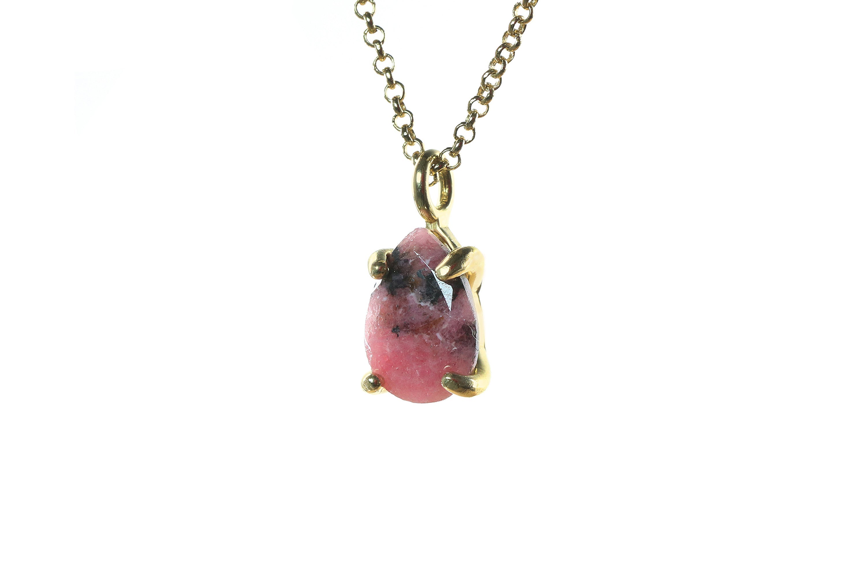 Pear Pink Rhodonite Gold Necklace