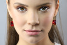 Princess Cut Square Shape Ruby Stone Gold Earrings