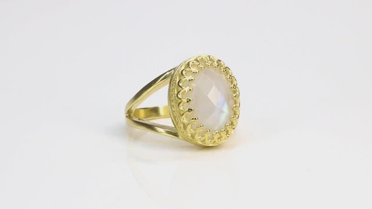 Please your moon child heart with this gem jewelry from Anemone Jewelry. Moonstone rings for women manifests the beauty and the energies of the Moon. Perfectly contrasting a 14k Rose Gold ,Yellow Gold, White Gold or Sterling Silver, this is 10x14mm oval rainbow Moonstone gemstone ring is an awesome everyday accessory.