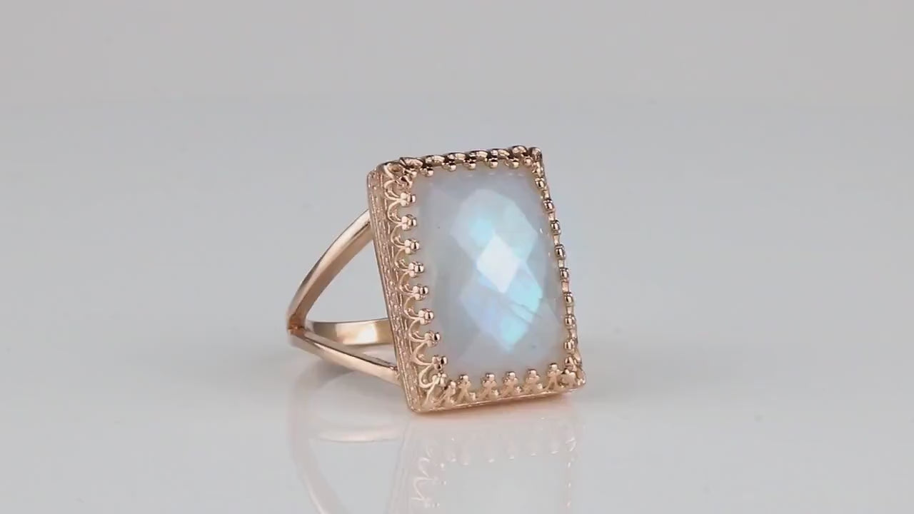 Faceted Moonstone in 14K Gold Ring