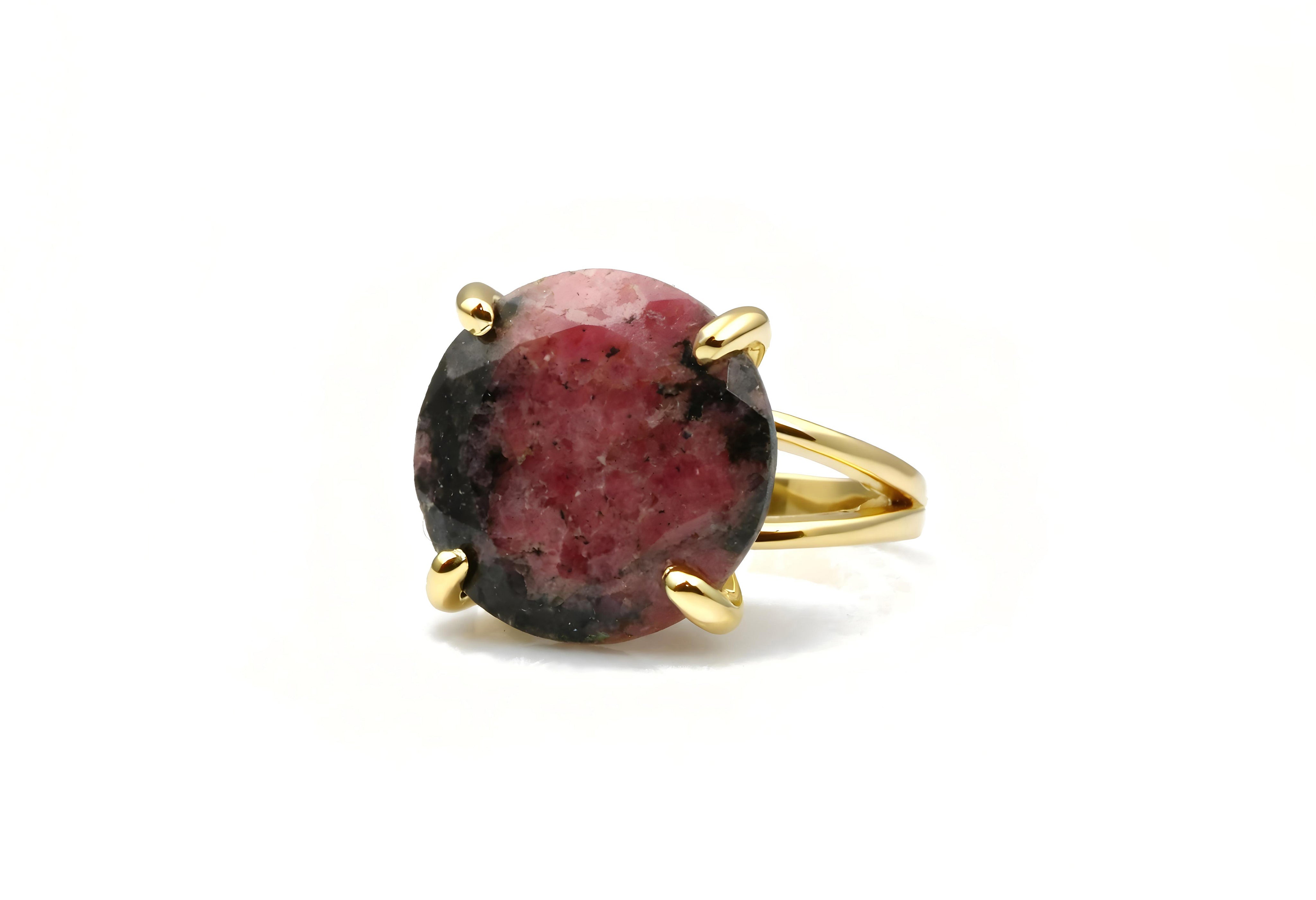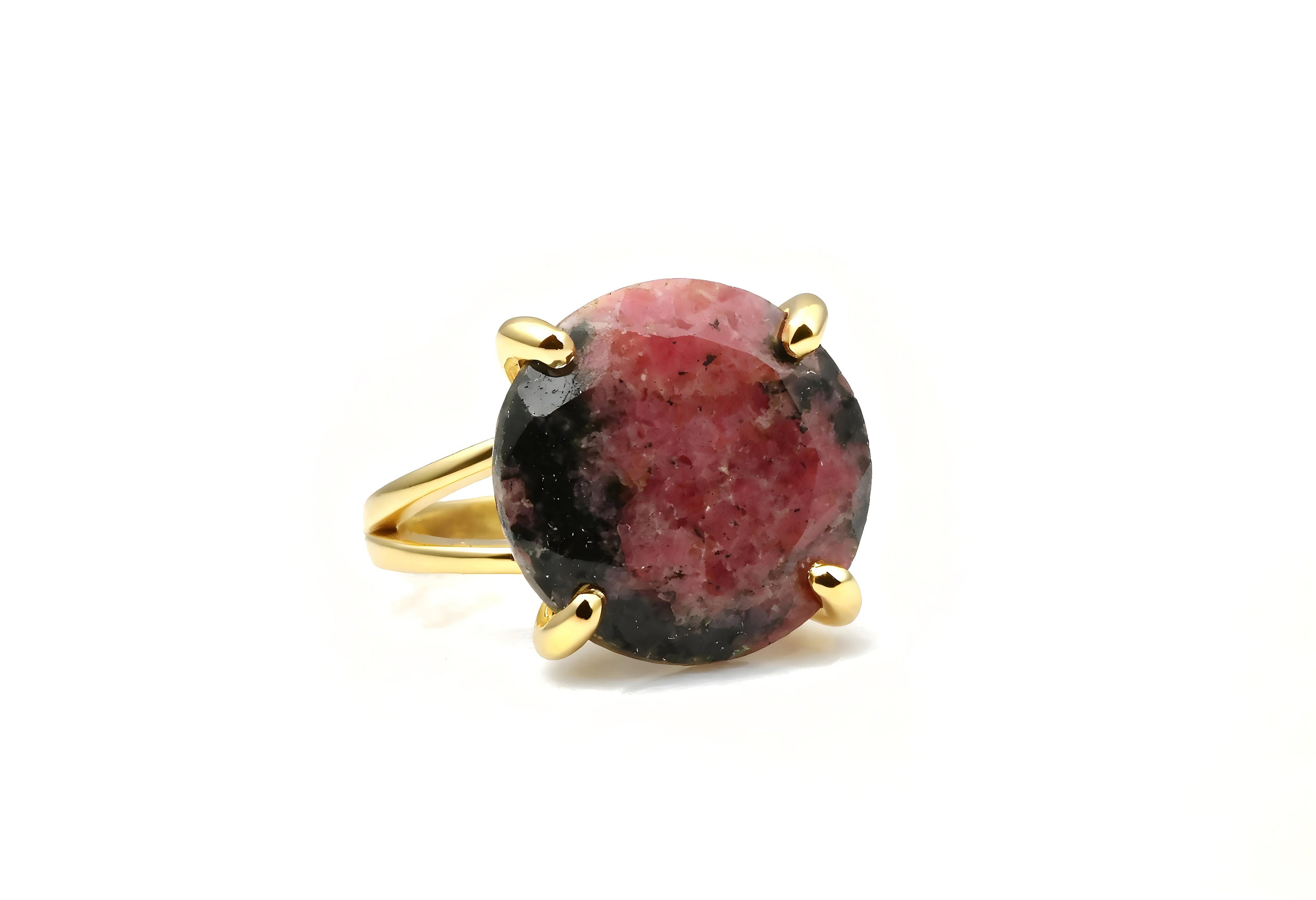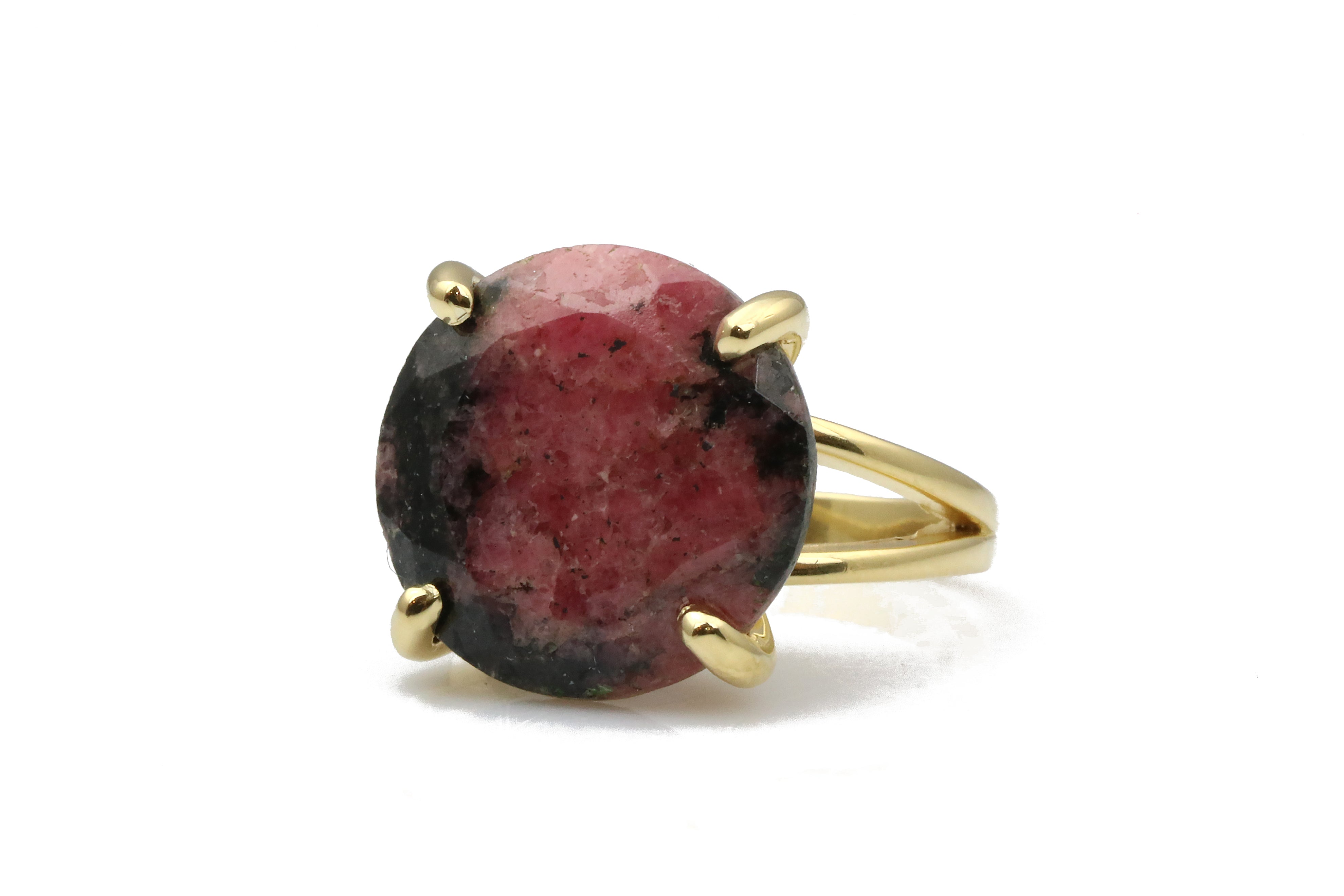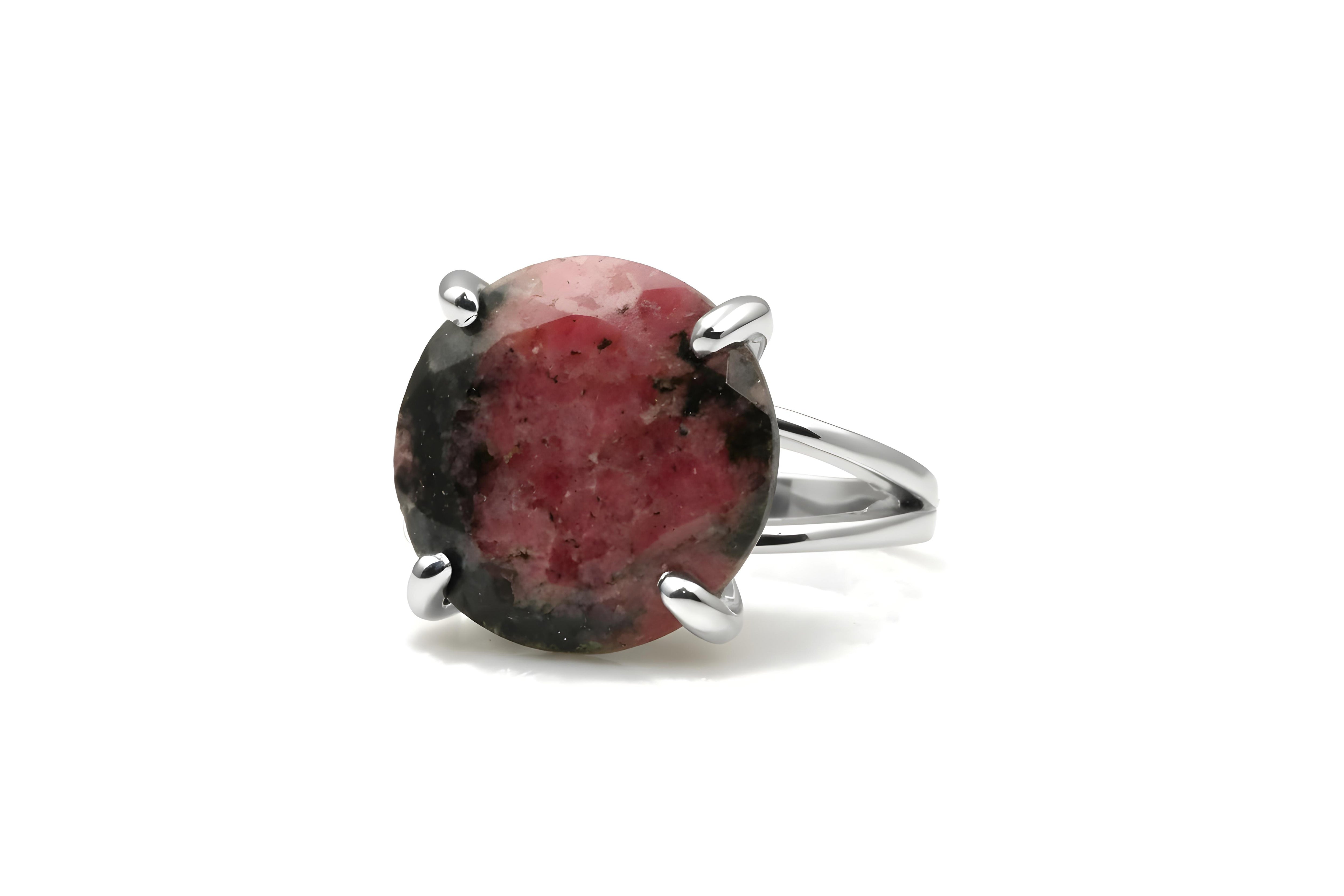 Crafted with natural rhodonite, each ring features its own unique pattern, giving you a one-of-a-kind stone.