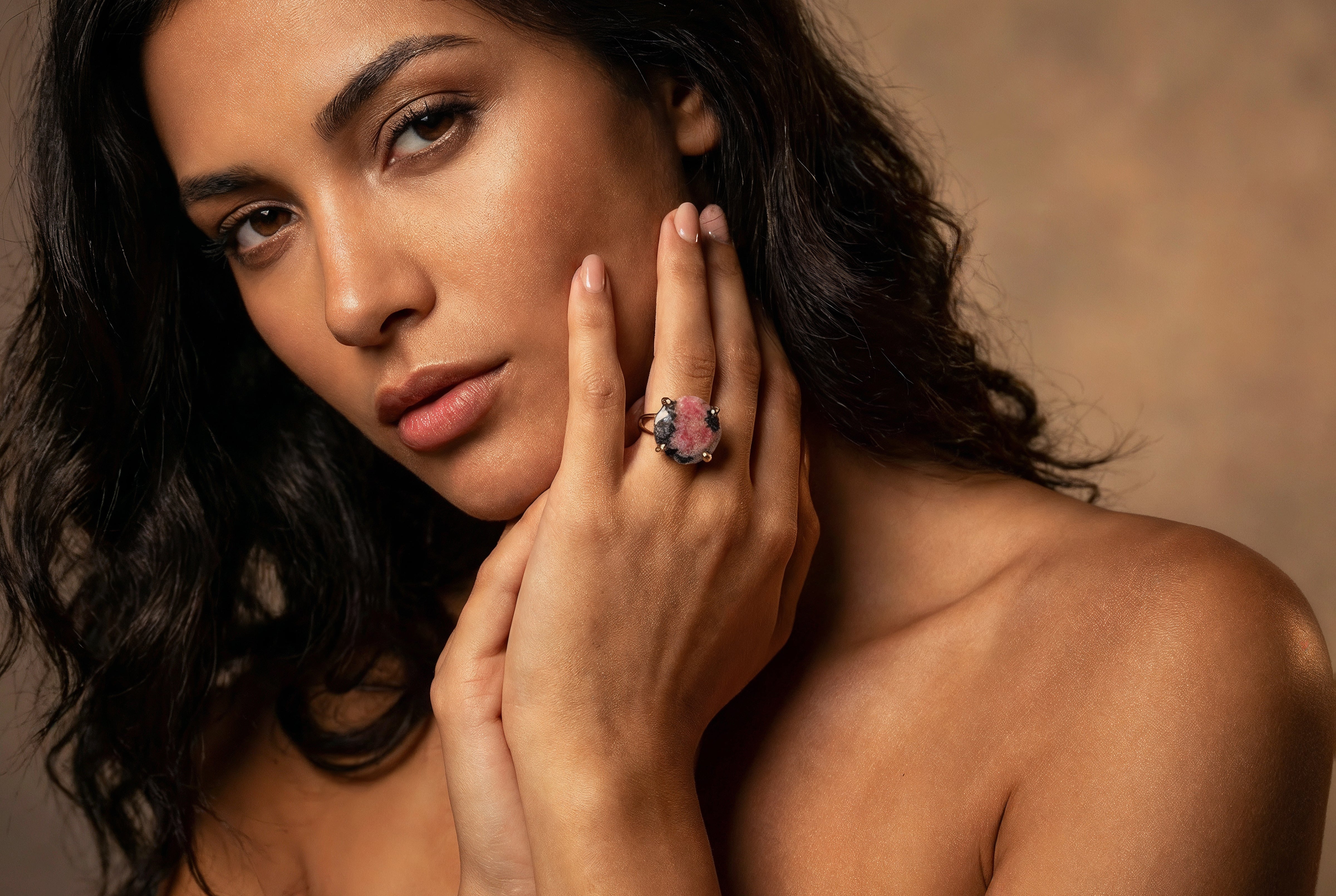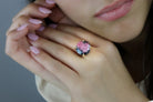 This bold square-cut rhodonite ring brings a rich blend of dark pink and deep natural tones, making it a standout piece for any jewelry lover. Its polished rose gold finish and hand-set gemstone create a strong, feminine look that pairs effortlessly with everyday style or evening outfits.