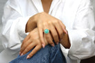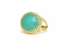 A statement ring from Anemone’s collection of gem rings for women that flaunts a round Amazonite, pronged and perched in a 14k gold-filled ring band - designed with a Victorian feel and inspiration. A ring jewelry for women that is magnificent its own way, with its beautiful semi-precious gemstone fashioned with its gold ring band. You can never go wrong with this piece for a gift, to you or for a loved one.