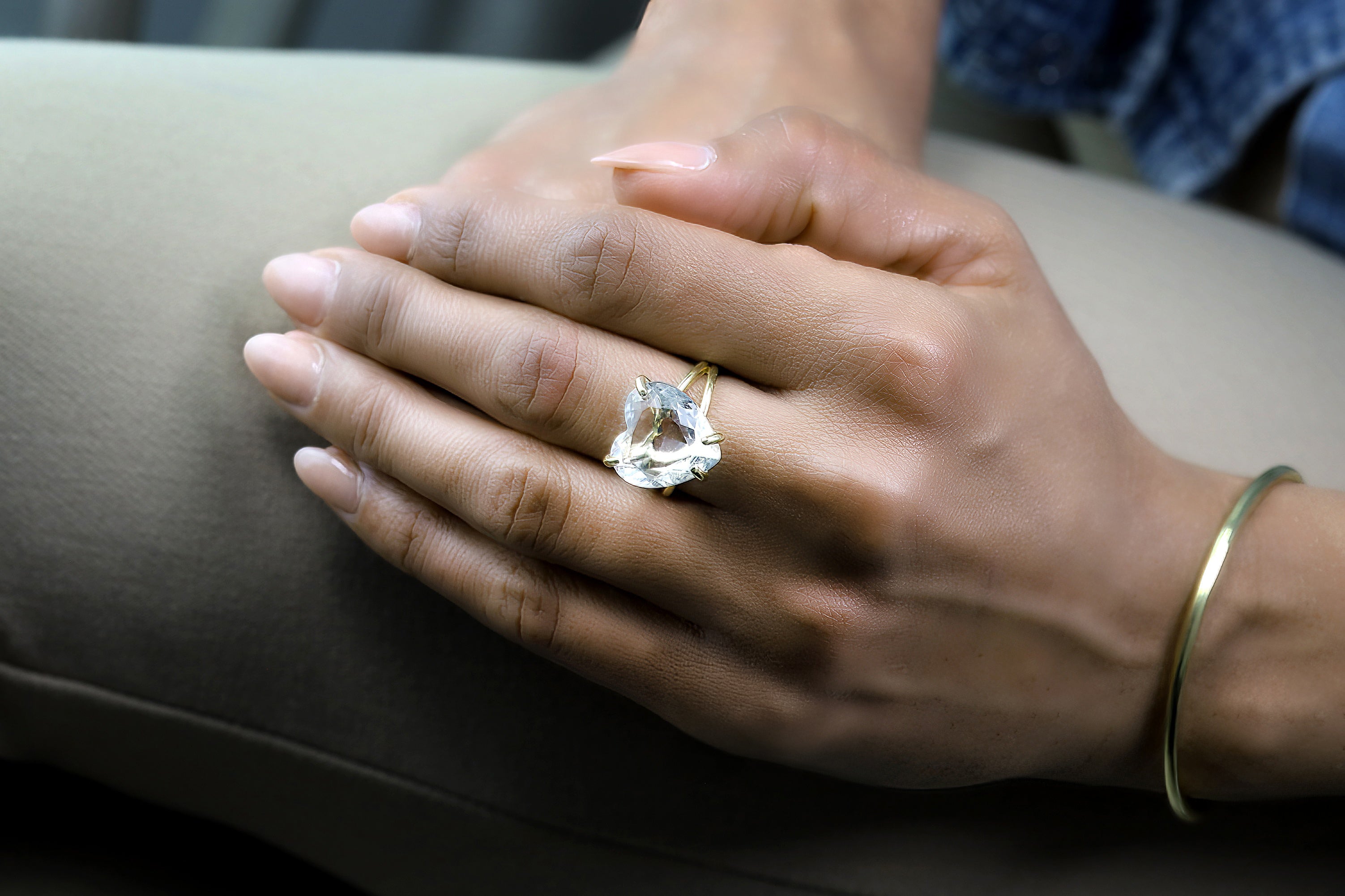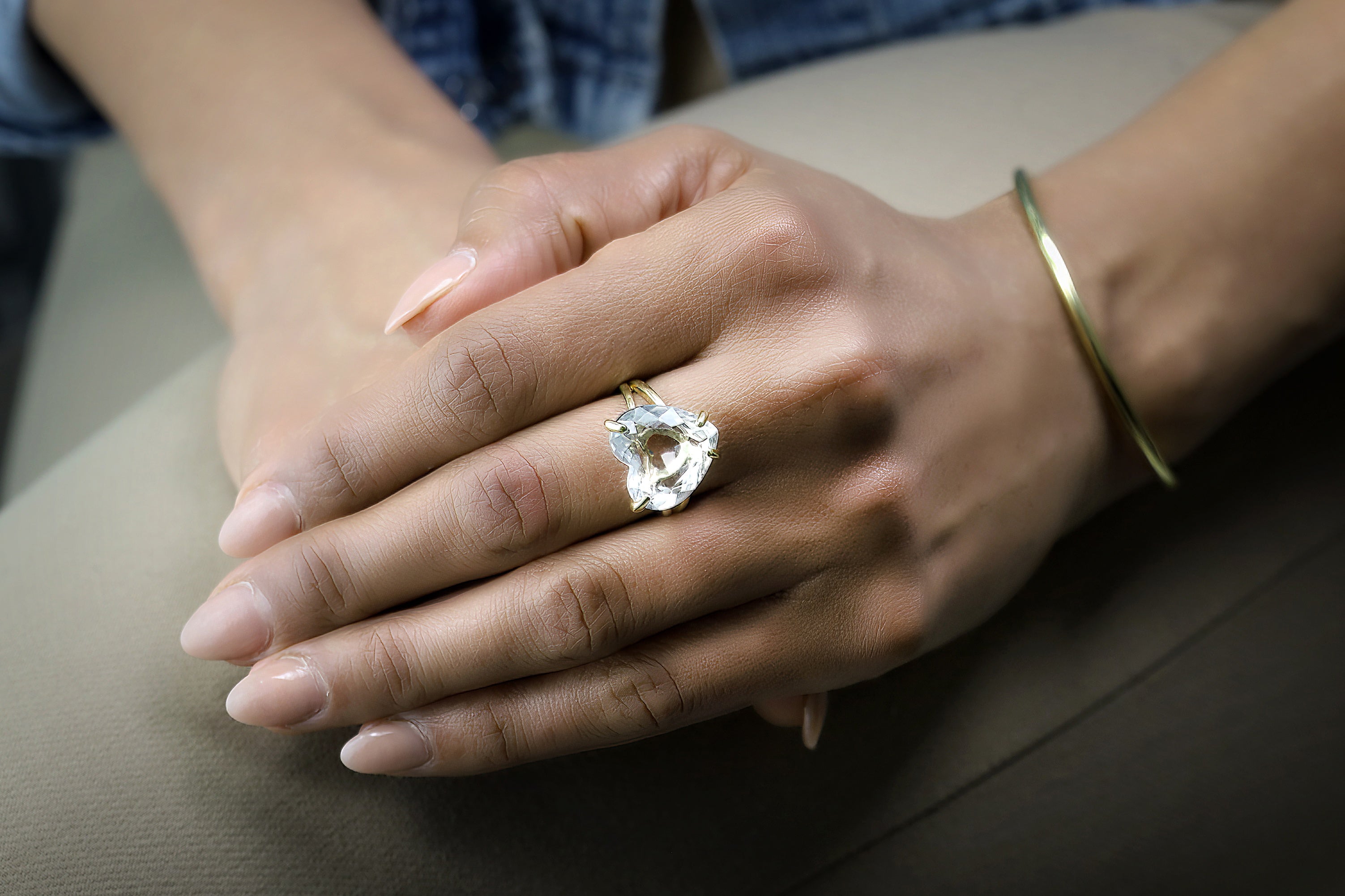 Known as the “master healer,” crystal quartz is said to amplify energy and promote balance, clarity, and strength. Whether chosen for its spiritual symbolism or its luminous sparkle, this cocktail ring is a powerful personal statement or a meaningful gift.