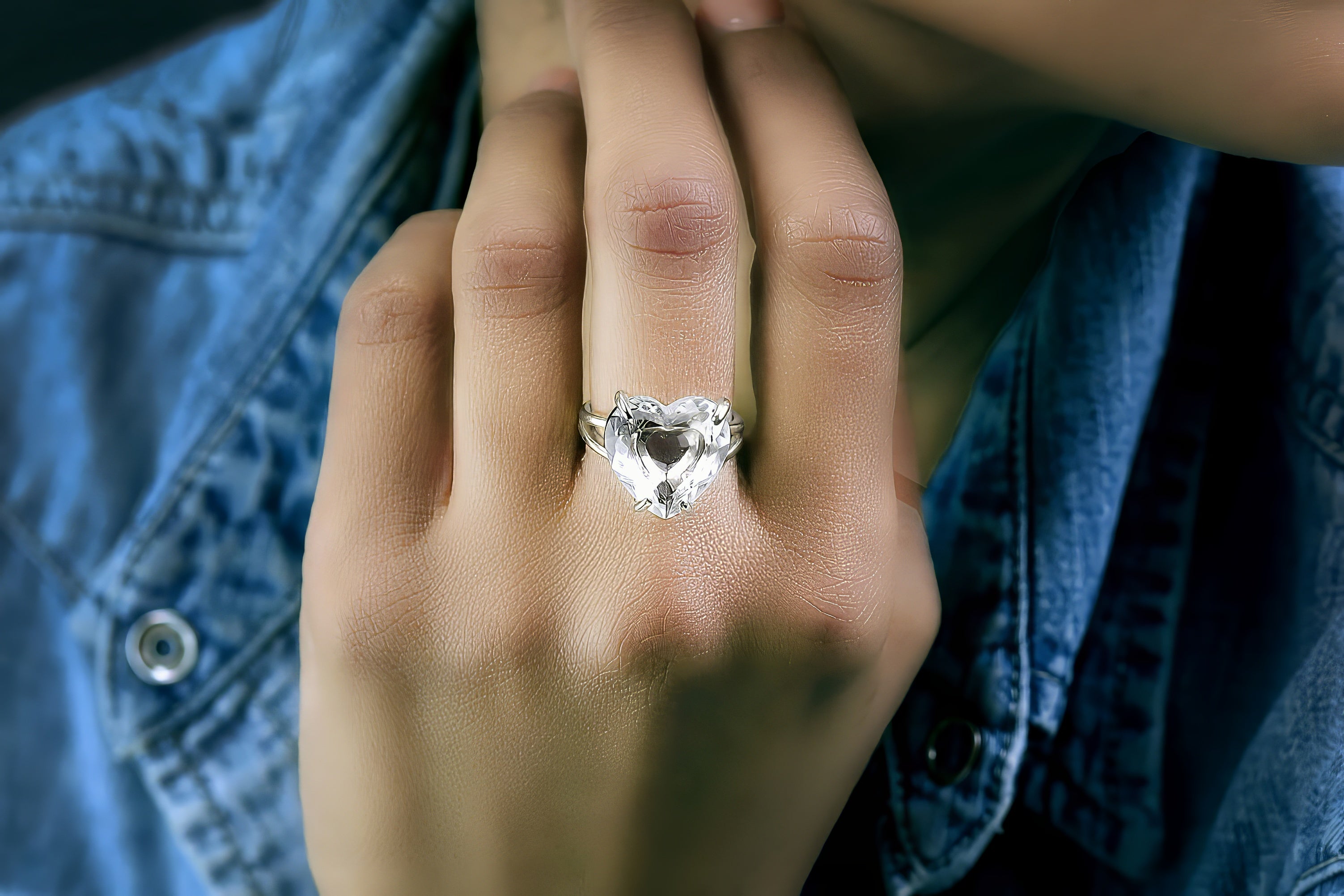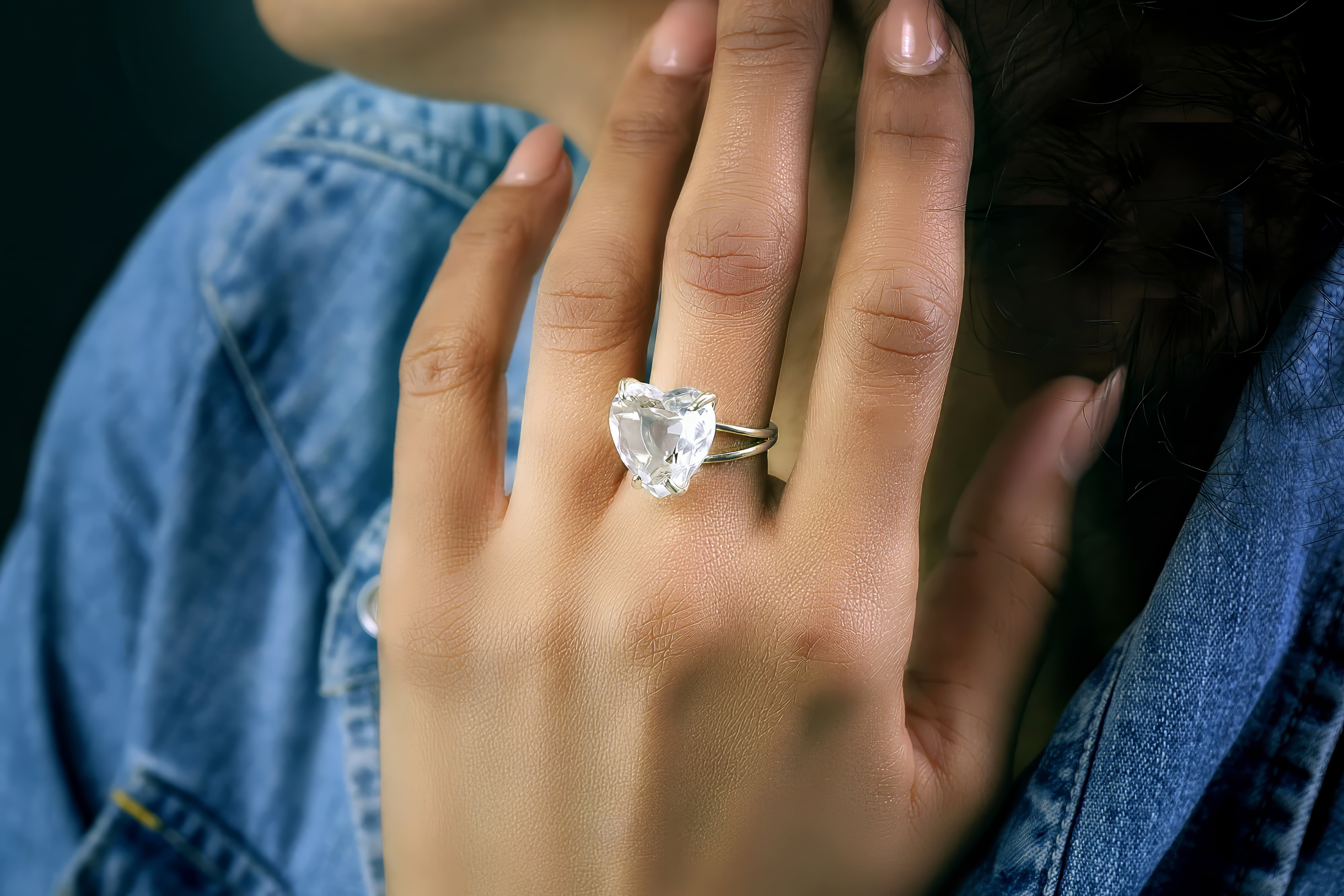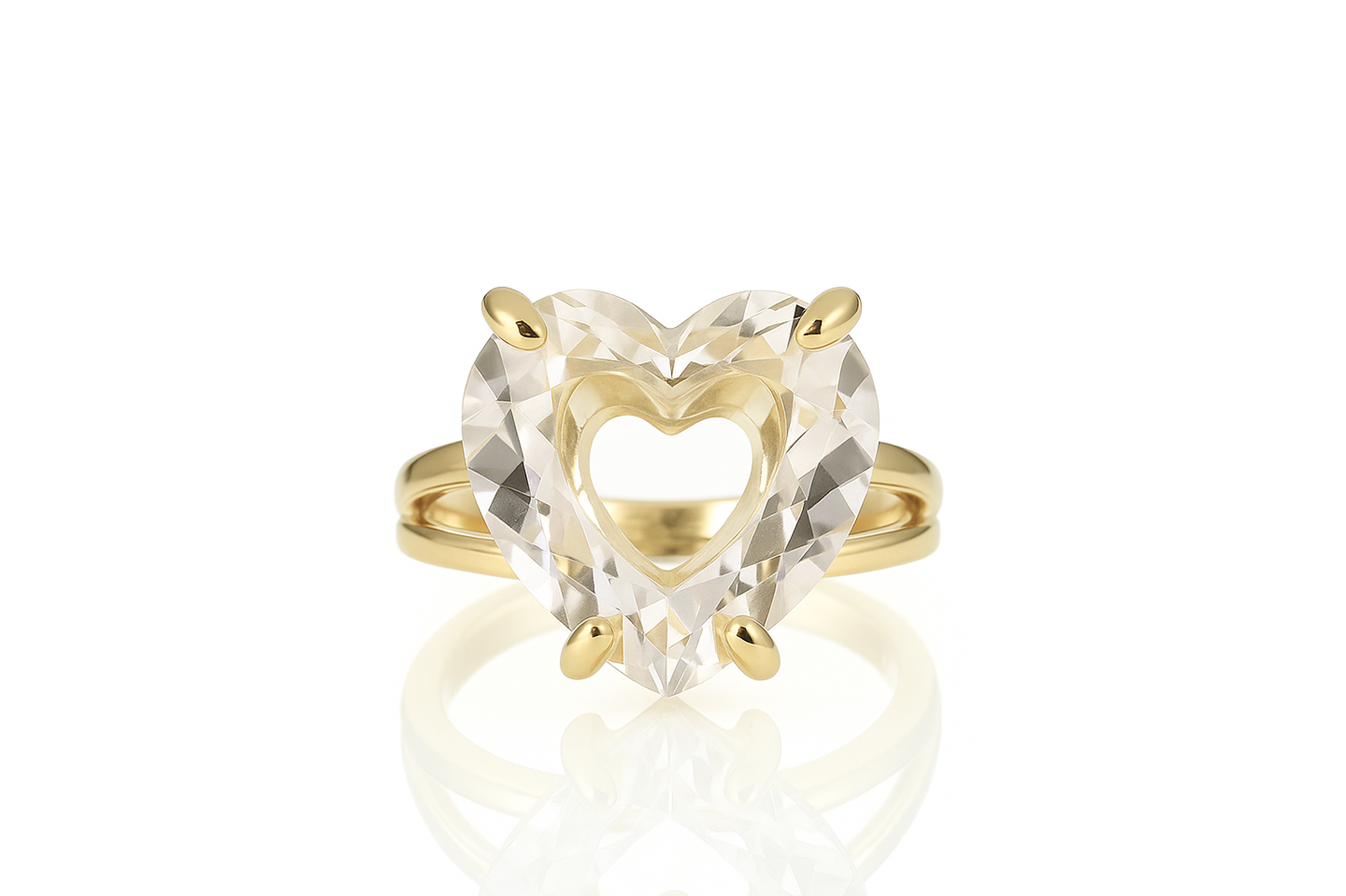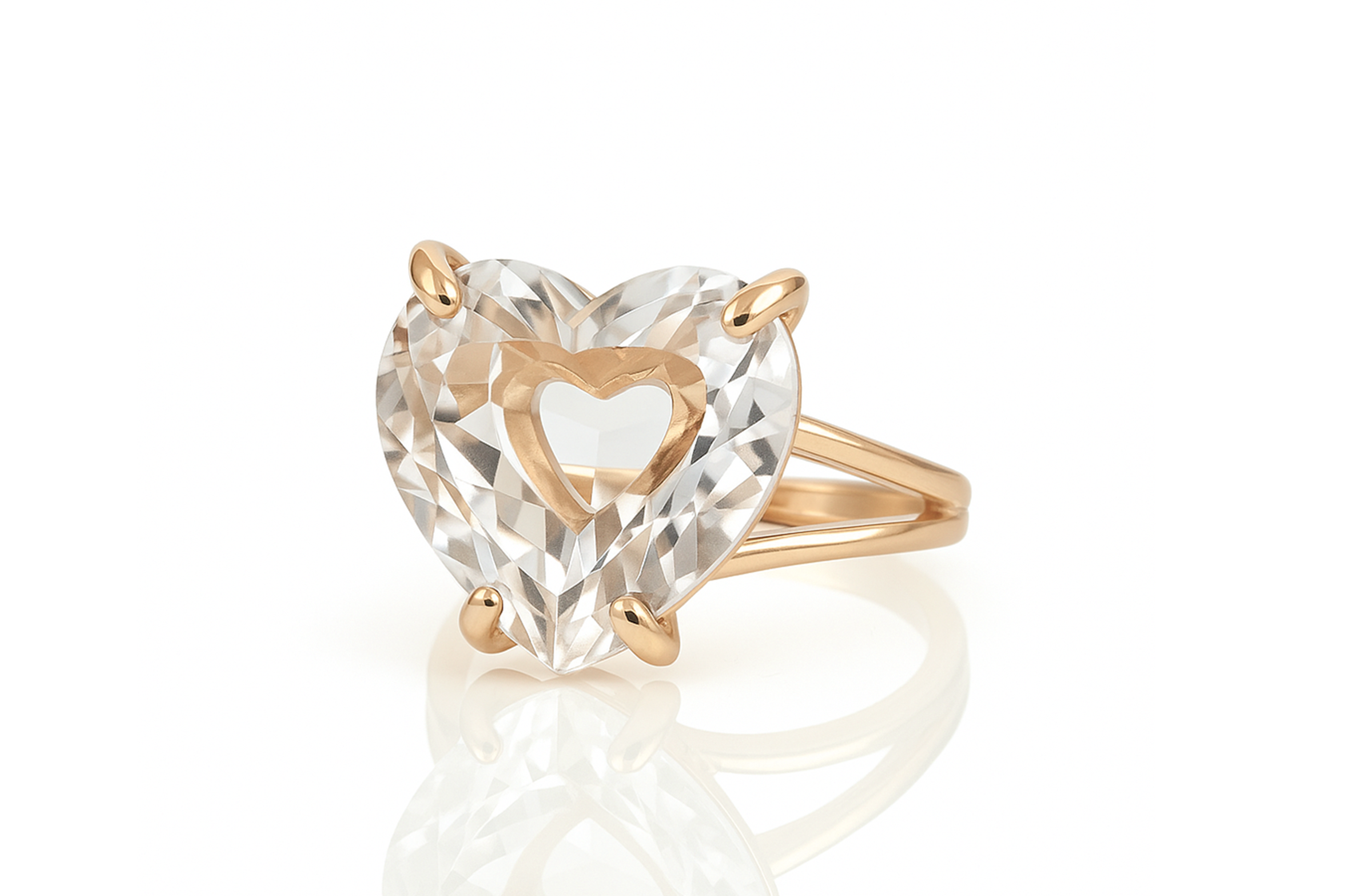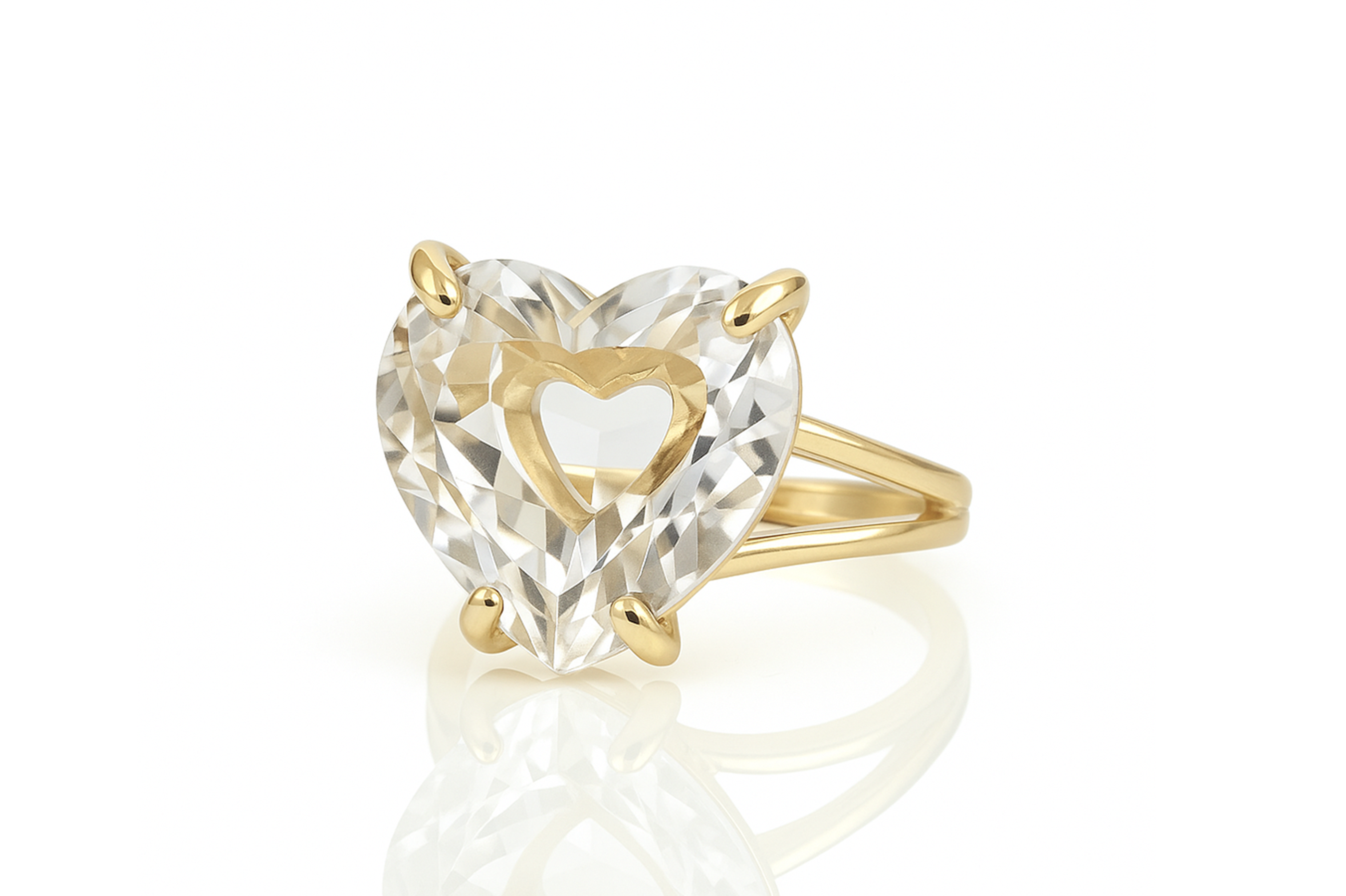 Crystal Quartz Heart-Cut Gold Statement Ring
