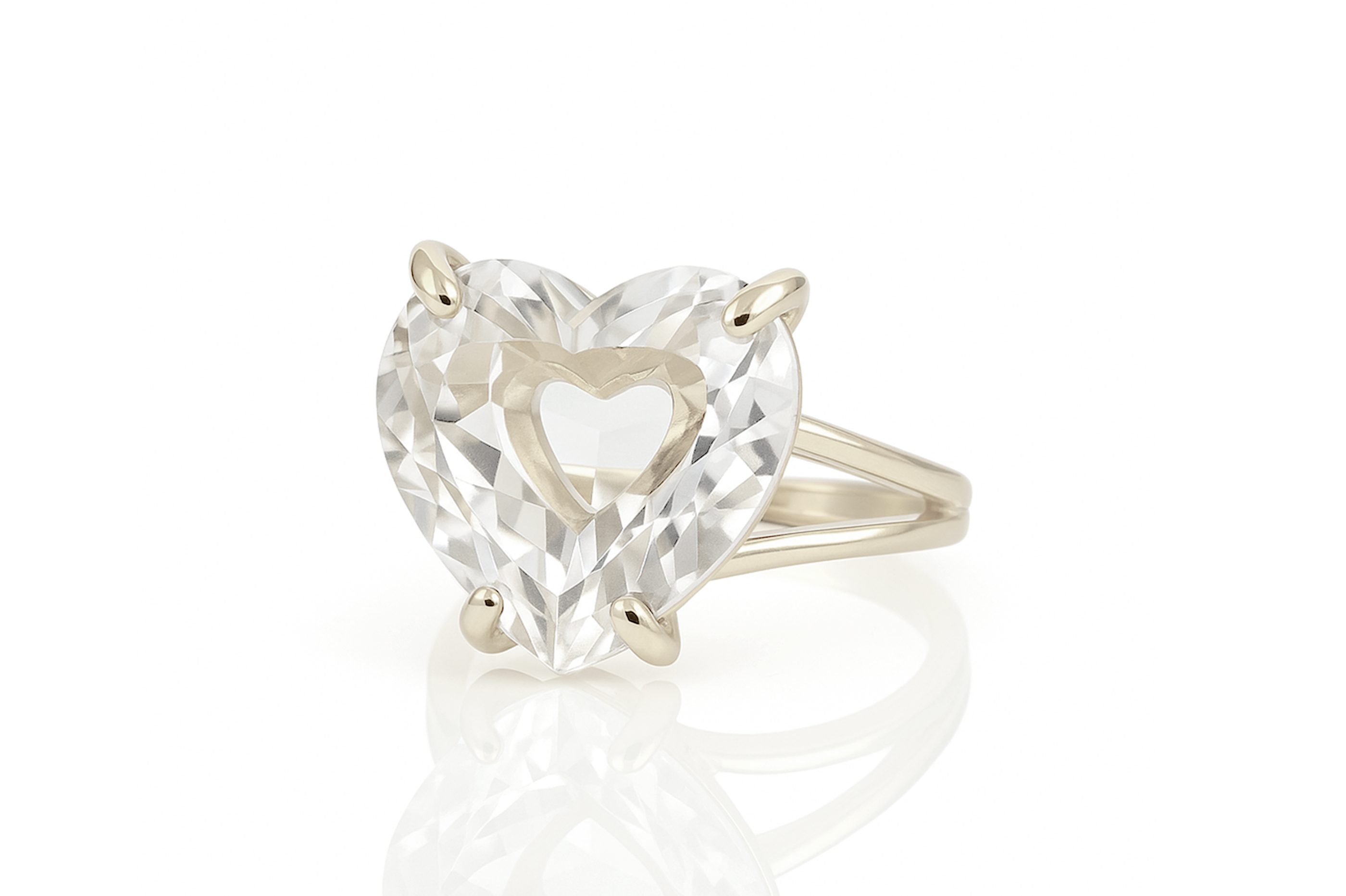This crystal quartz heart ring is a bold and radiant expression of clarity and light. Set in a 14k gold filled band, the faceted heart-shaped gemstone shimmers with brilliant reflections, adding elegance and drama to any look.