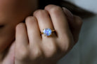 Immerse in the captivating allure of our Rainbow Moonstone Ring, set in a luxurious gold vintage-inspired solitaire design. This exquisite piece features a round white moonstone, renowned for its enchanting play of color that captures the essence of a rainbow. The timeless vintage style evokes a sense of nostalgia, while the moonstone's natural beauty makes it an ideal choice for engagement celebrations or as a standout cocktail ring. Perfect for those who cherish unique jewelry, this ring promises to be a conversation starter, blending the mystique of moonstone with the warmth of gold to create a piece that's both captivating and timeless.