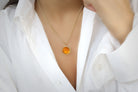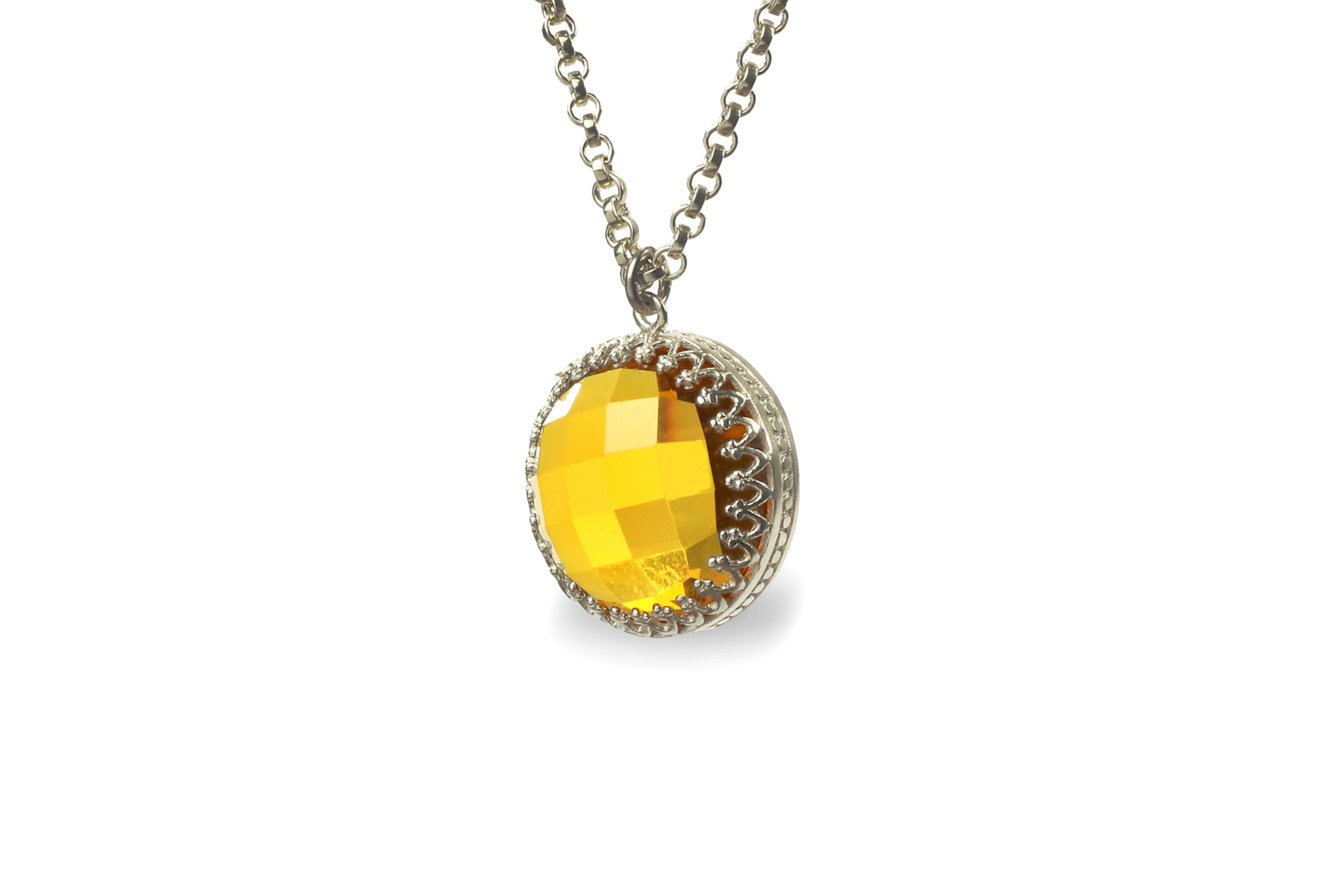 Stand out with the splendid luster of this round crystal necklace showcasing a Citrine stone. This gem necklace for women has a Sterling silver finish, wearable with other statement or dainty pieces. This custom necklace is a perfect addition to your collection or a charming gift for someone on their special day.
