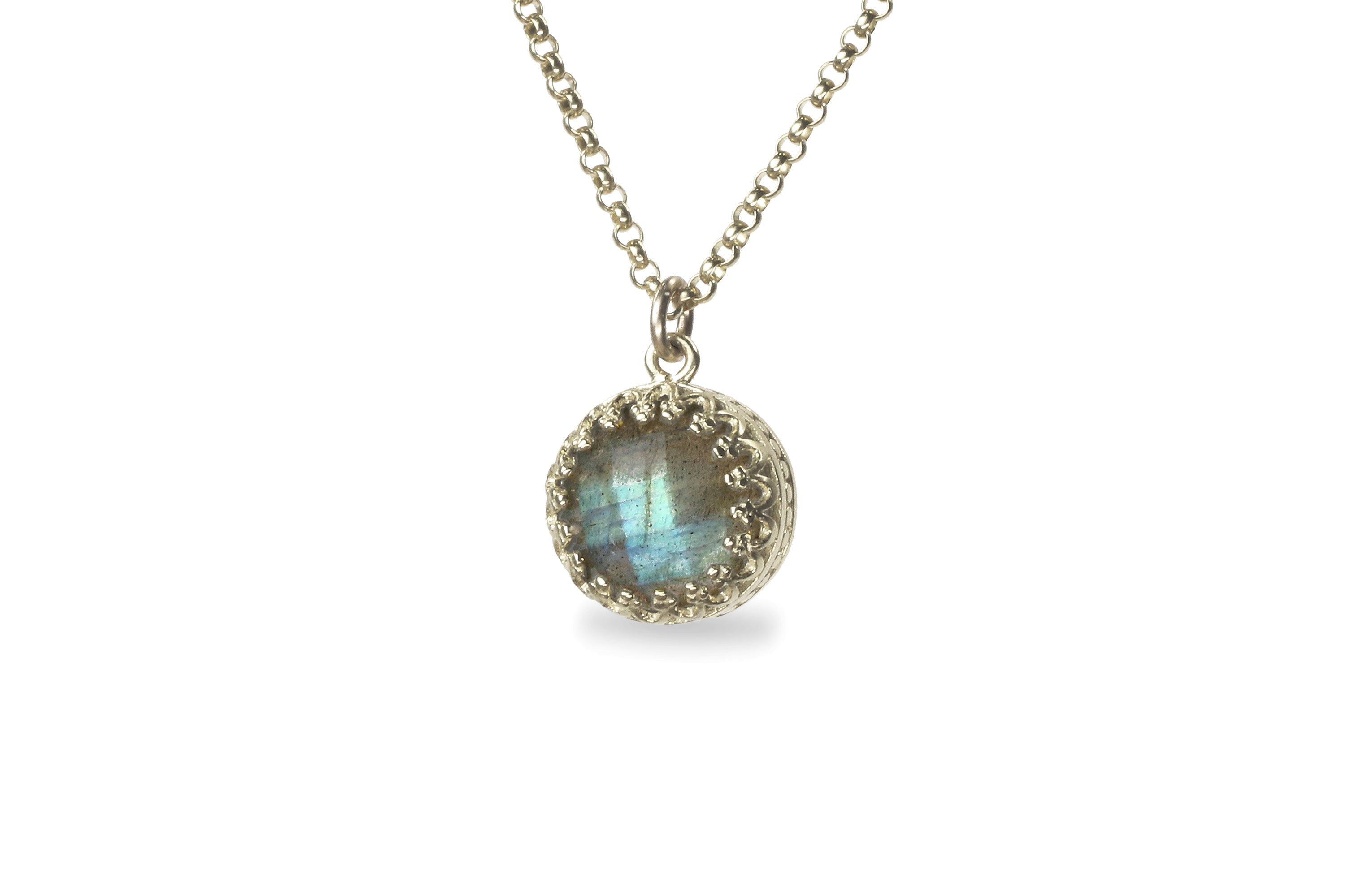 Wear effortlessly chic elegance with this dainty necklace for women. A handmade jewelry with a delicate, round pendant with a Labradorite stone. Can be stacked with a choker or a statement necklace, too.