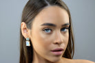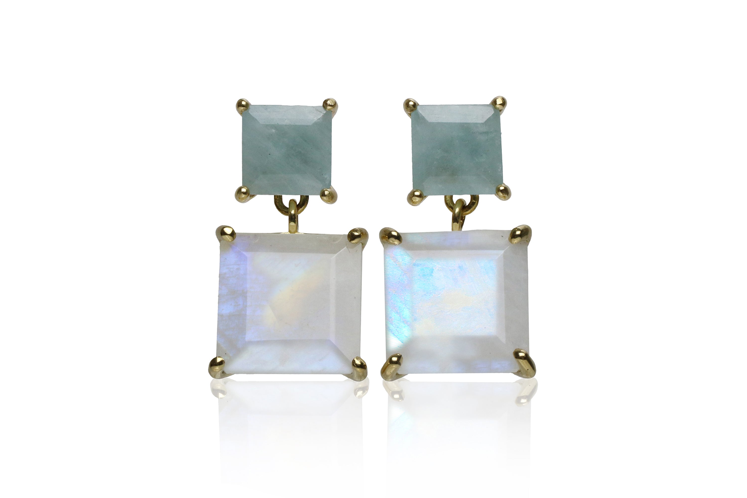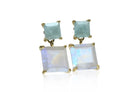 Square Dangle Moonstone and Aquamarine Gold Earrings