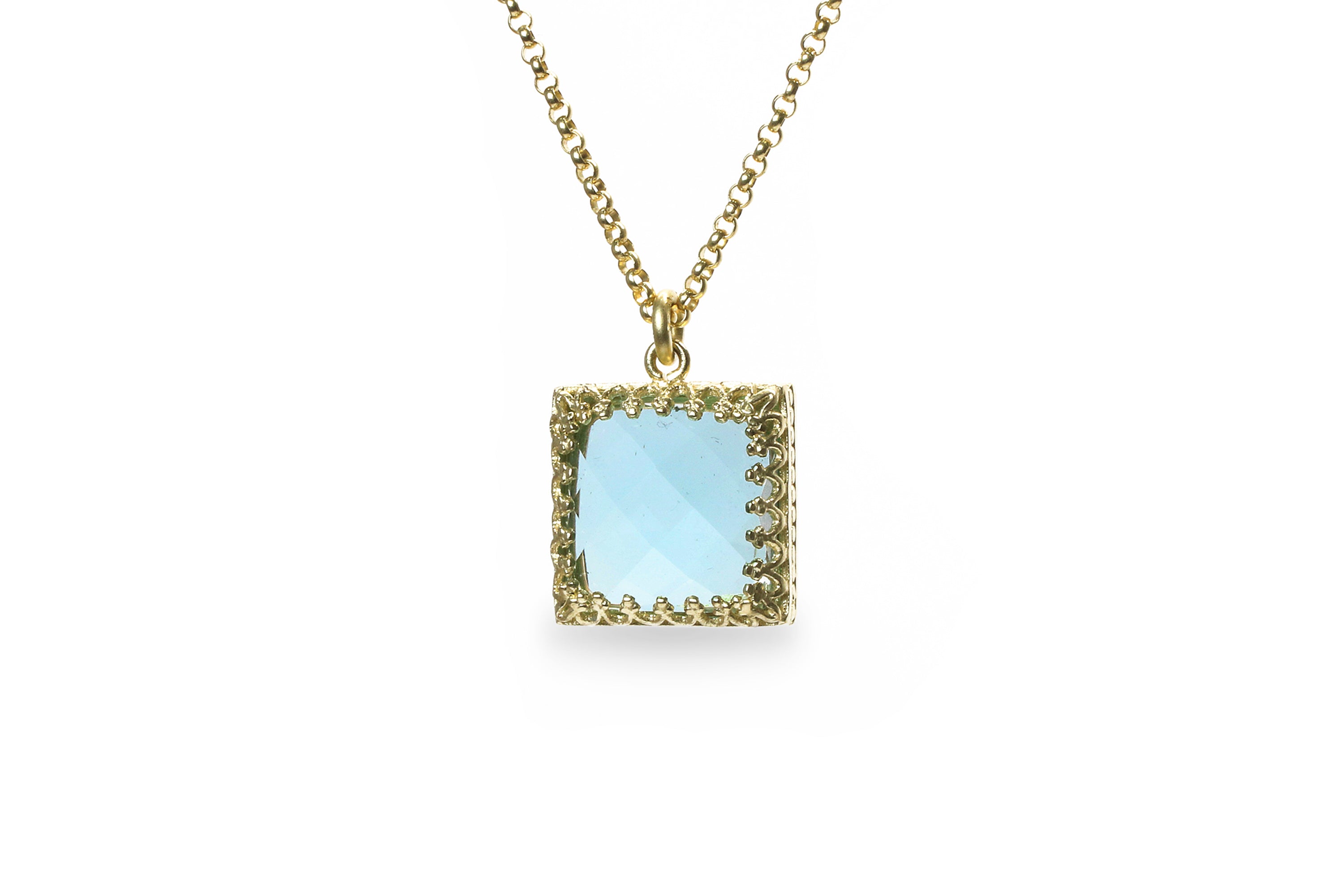 Square Pendant Blue Topaz Necklace for Women