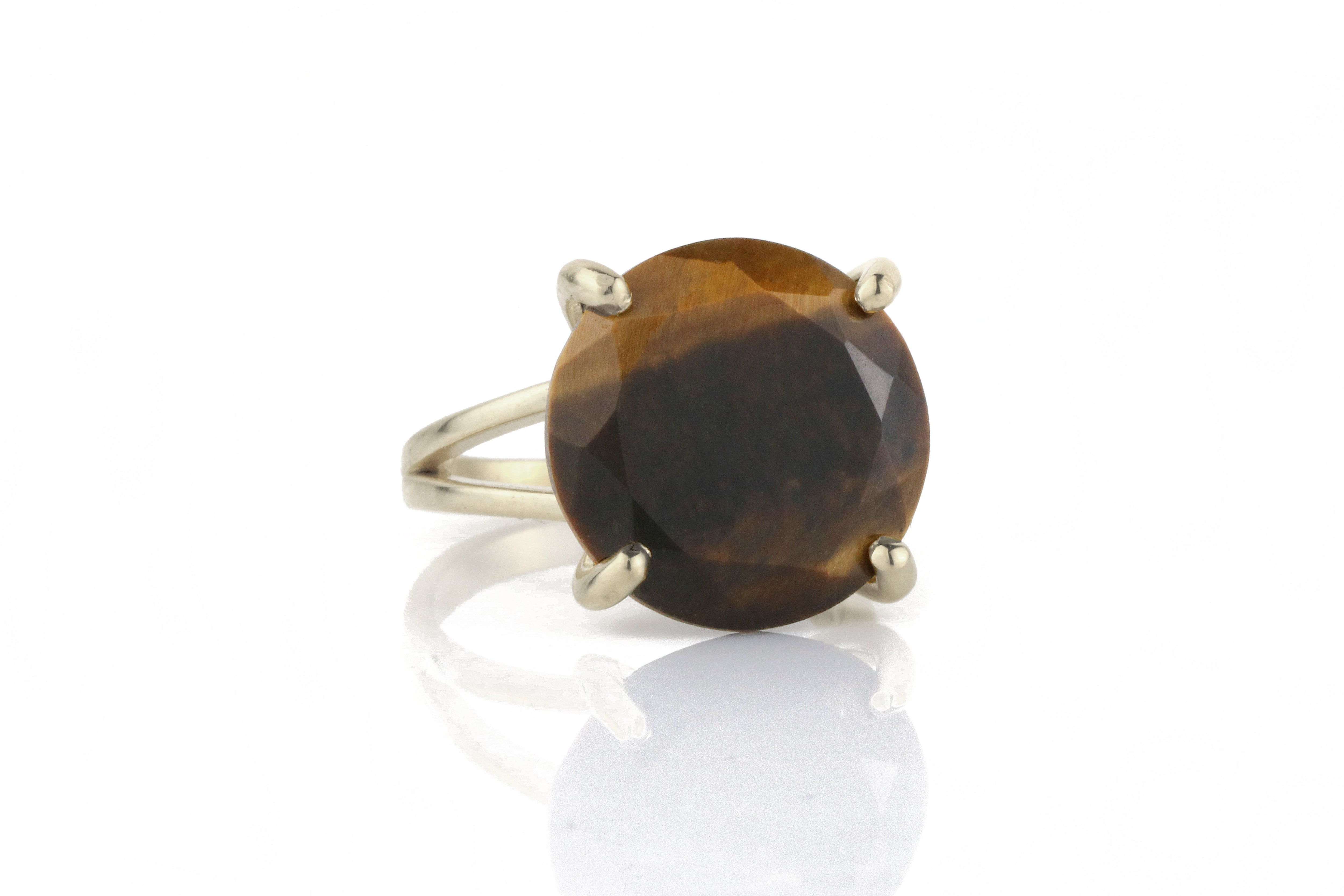 Statement 16MM Tiger Eye Crystal Yellow Gold Ring