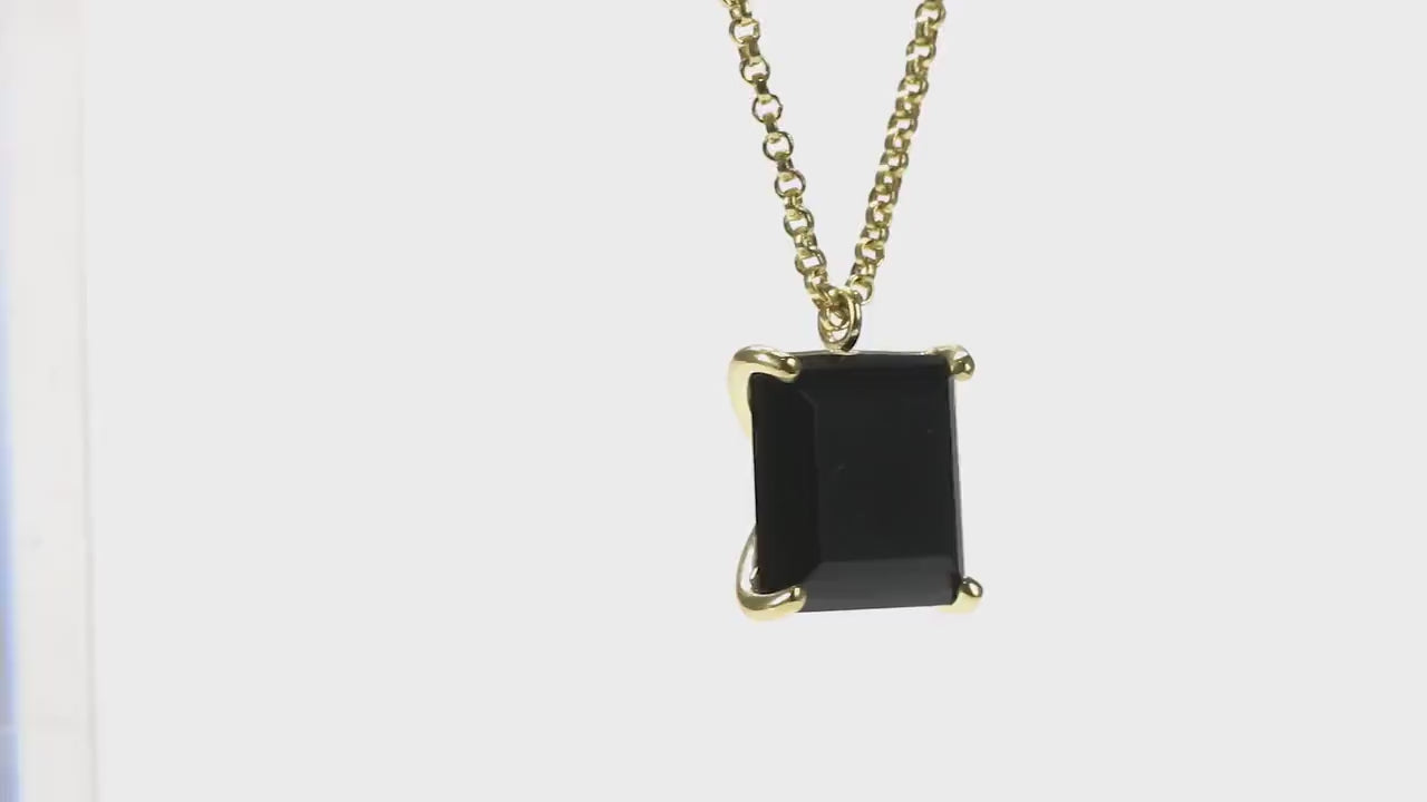 A single Black Onyx stone, square-cut and prong-set is the main highlight of this handmade jewelry piece. This black and gold necklace is a beautiful piece to stylize your ensembles. A black pendant necklace that will suit every occasion and season.