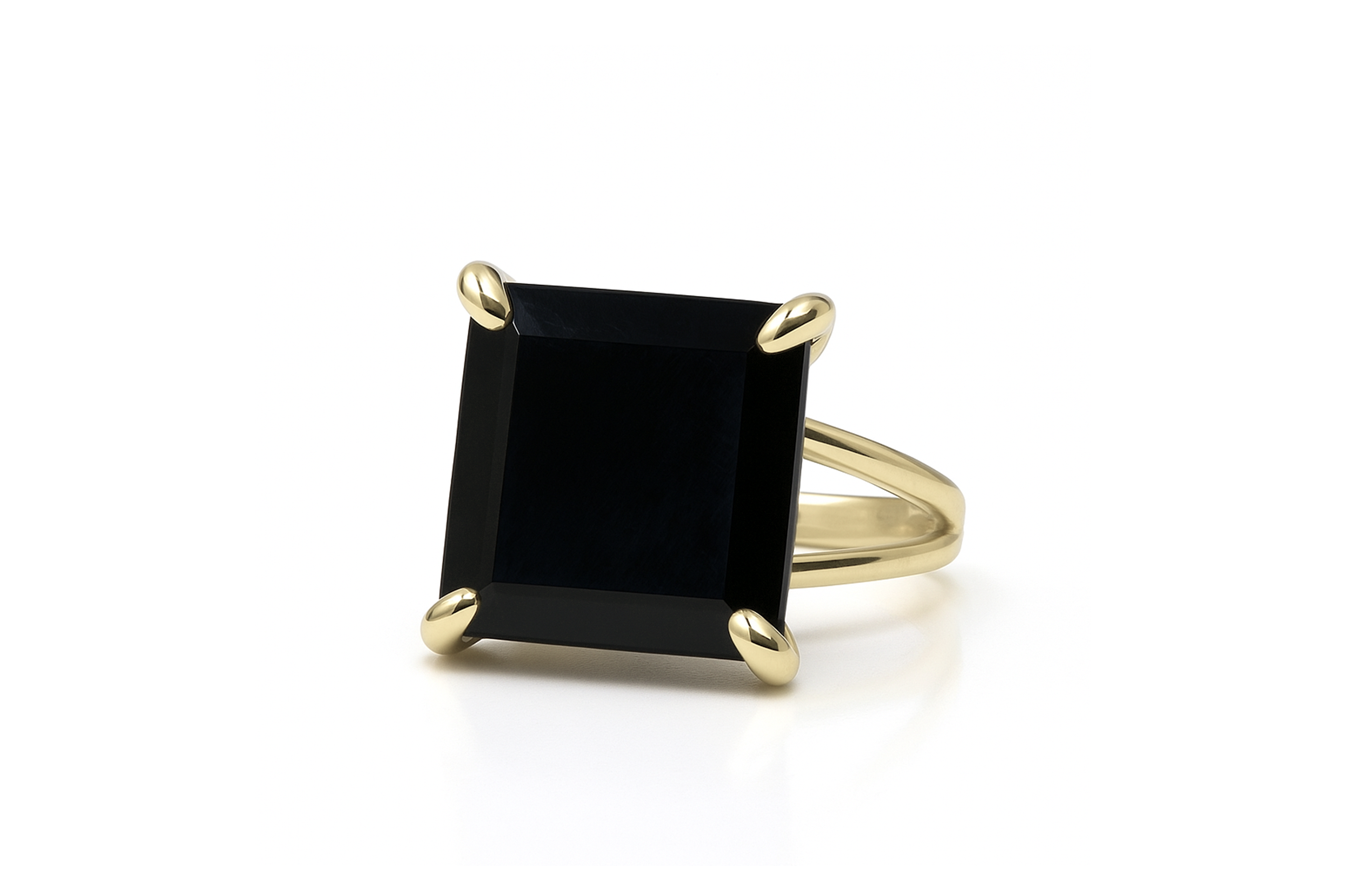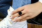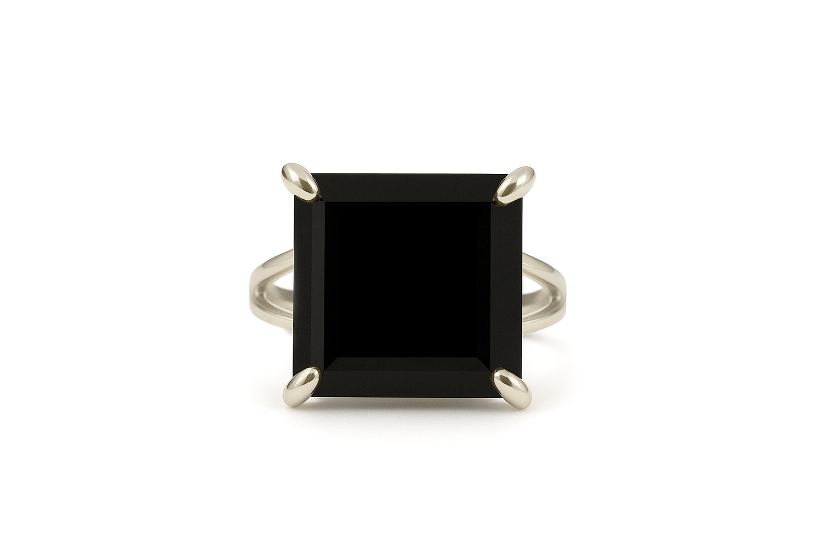 This sterling silver ring features a square emerald-cut black onyx gemstone set in a polished band. With its sleek, modern style, this gemstone ring offers a bold alternative to traditional diamonds. Black onyx, known for its grounding and protective properties, adds meaning and elegance. Handcrafted in 925 silver, this square gemstone ring is a versatile choice for everyday wear, cocktail events, or as a timeless gift.