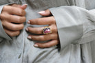 A bold and lush gemstone ring that flaunts a Rhodonite stone. A meticulously crafted piece from our collection of stone rings, this ring is a lovely piece you can add to your wardrobe, one that can elevate a simple outfit.