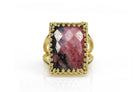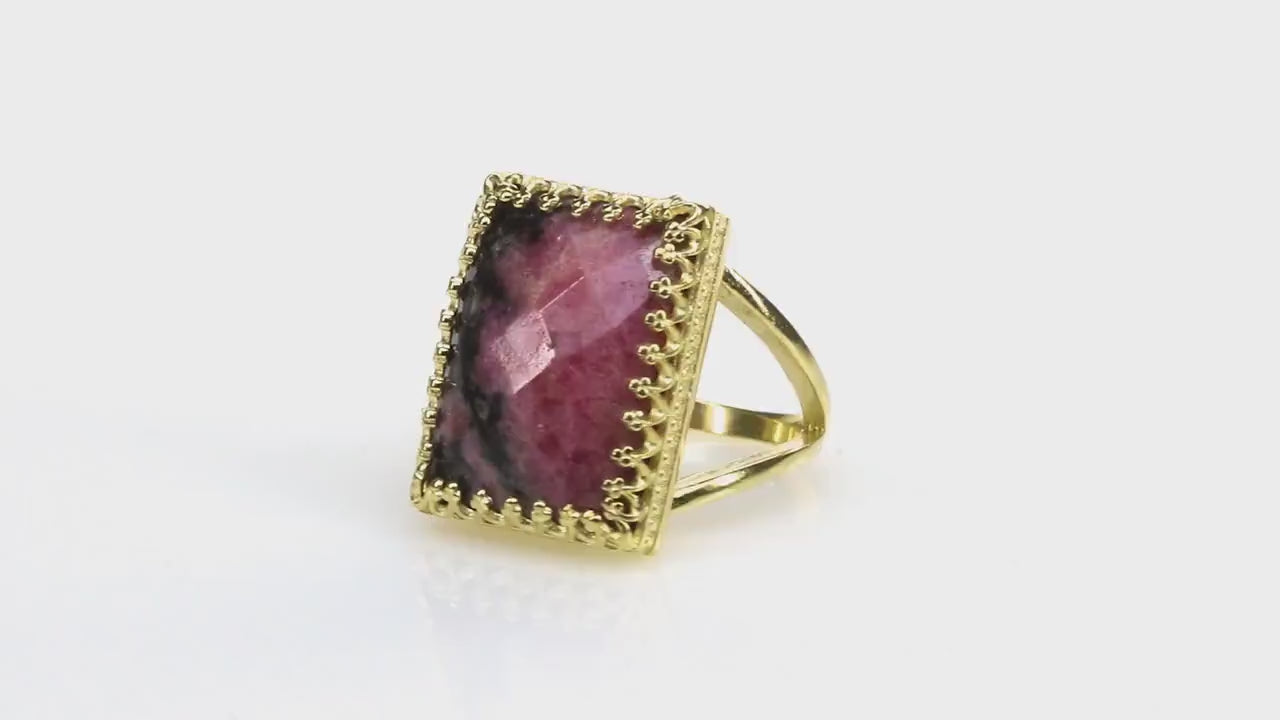 Statement Rectangle Cut Rhodonite 14k Gold Ring