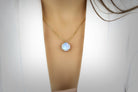 This fascinating silver necklace features a round Moonstone pendant. This elegant pendant necklace for women has a beautiful sheen and luster that changes the hue when hit by light. Stunning birthstone jewelry you can have in your wardrobe or give as a beautiful present for someone’s special day.