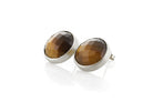 Tiger Eye Gemstone Earrings in Bezel Gold Setting