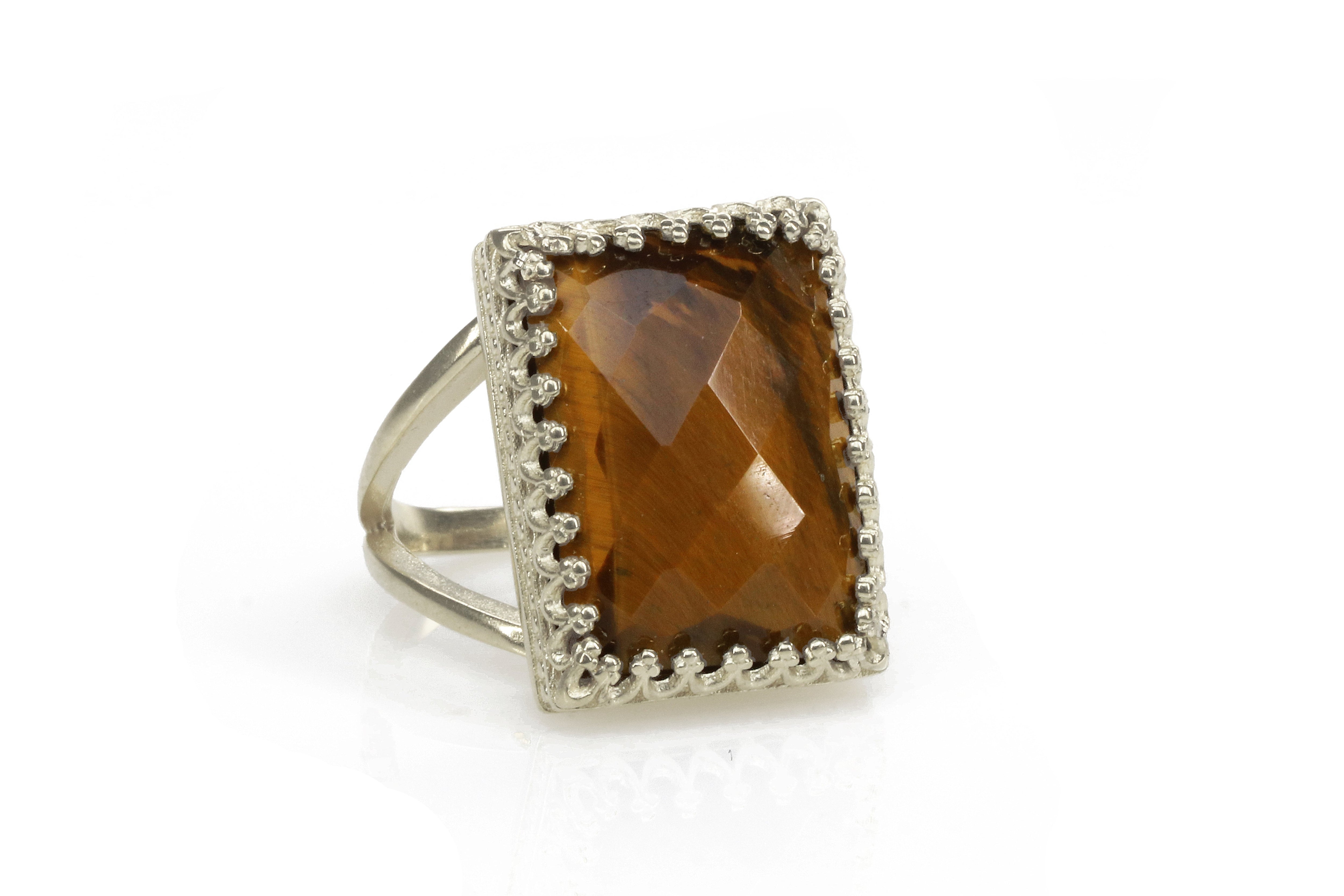 This cocktail ring features a 18x13mm Tiger Eye stone in a simple yet classy 925 Sterling Silver prong setting. Sterling silver rings for women such as this sophisticated piece makes a perfect gift and one you can have for yourself. Wear it through any occasion, day or night. A splendid, versatile piece.