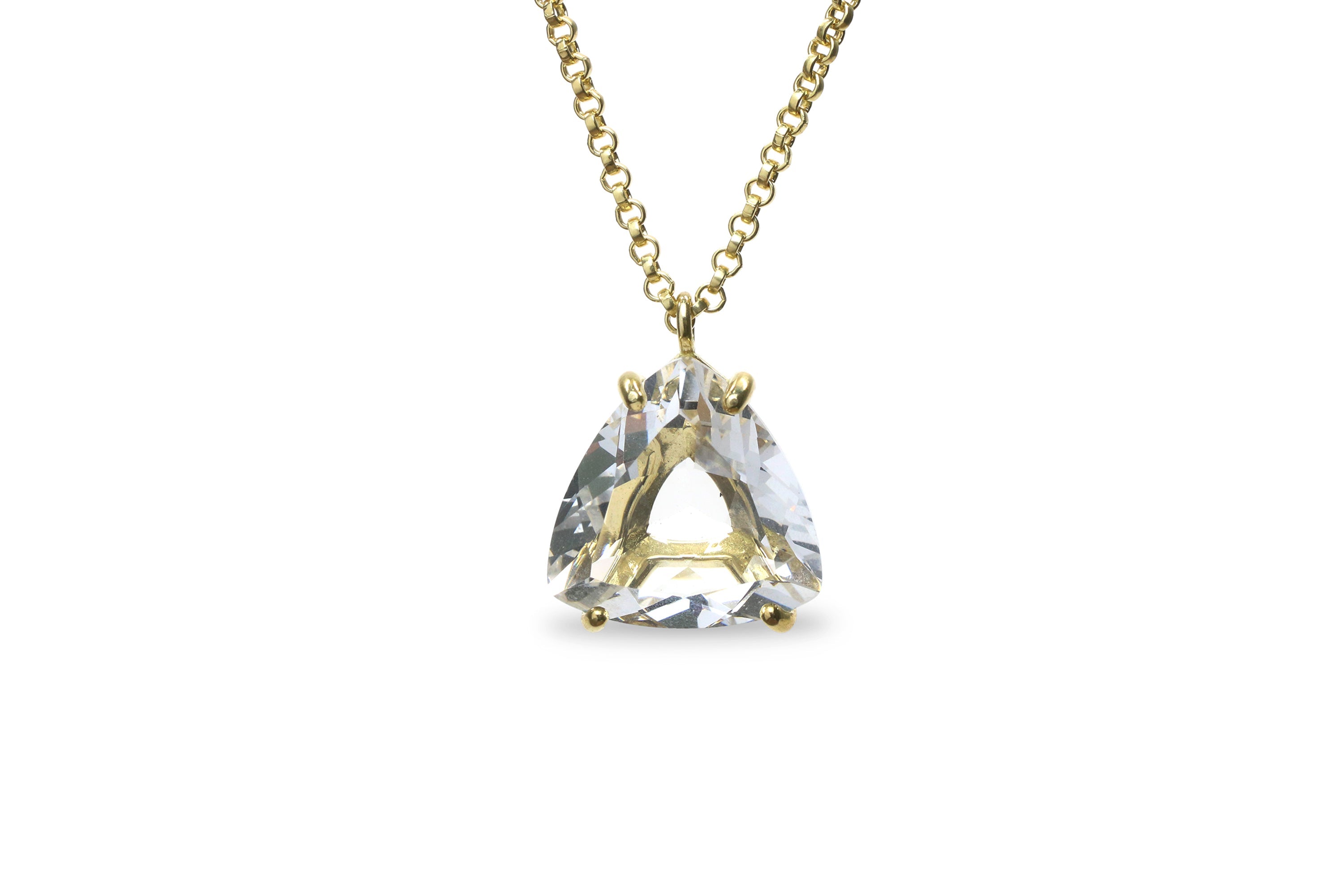 Trillion Clear Quartz Necklace in 14k Gold