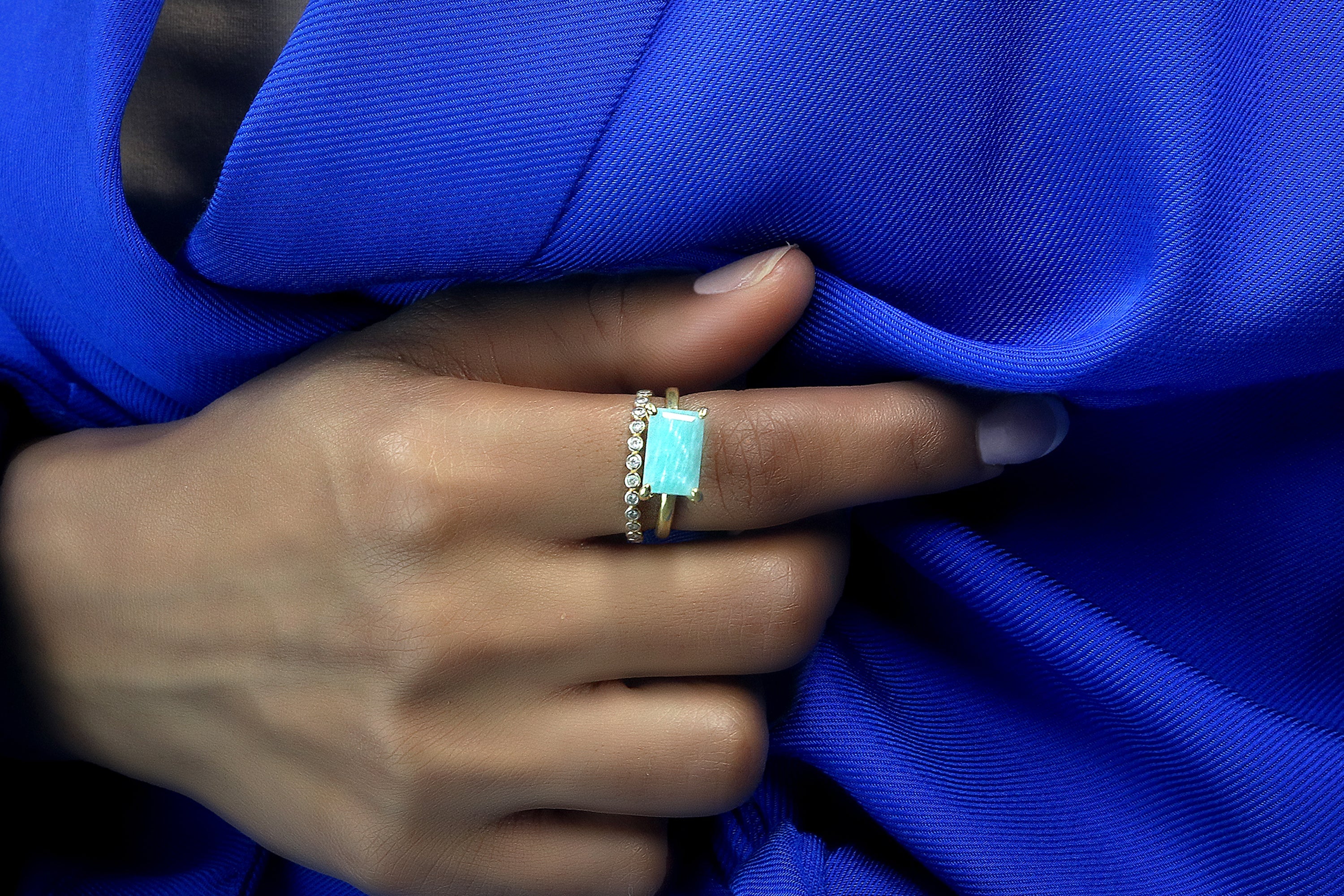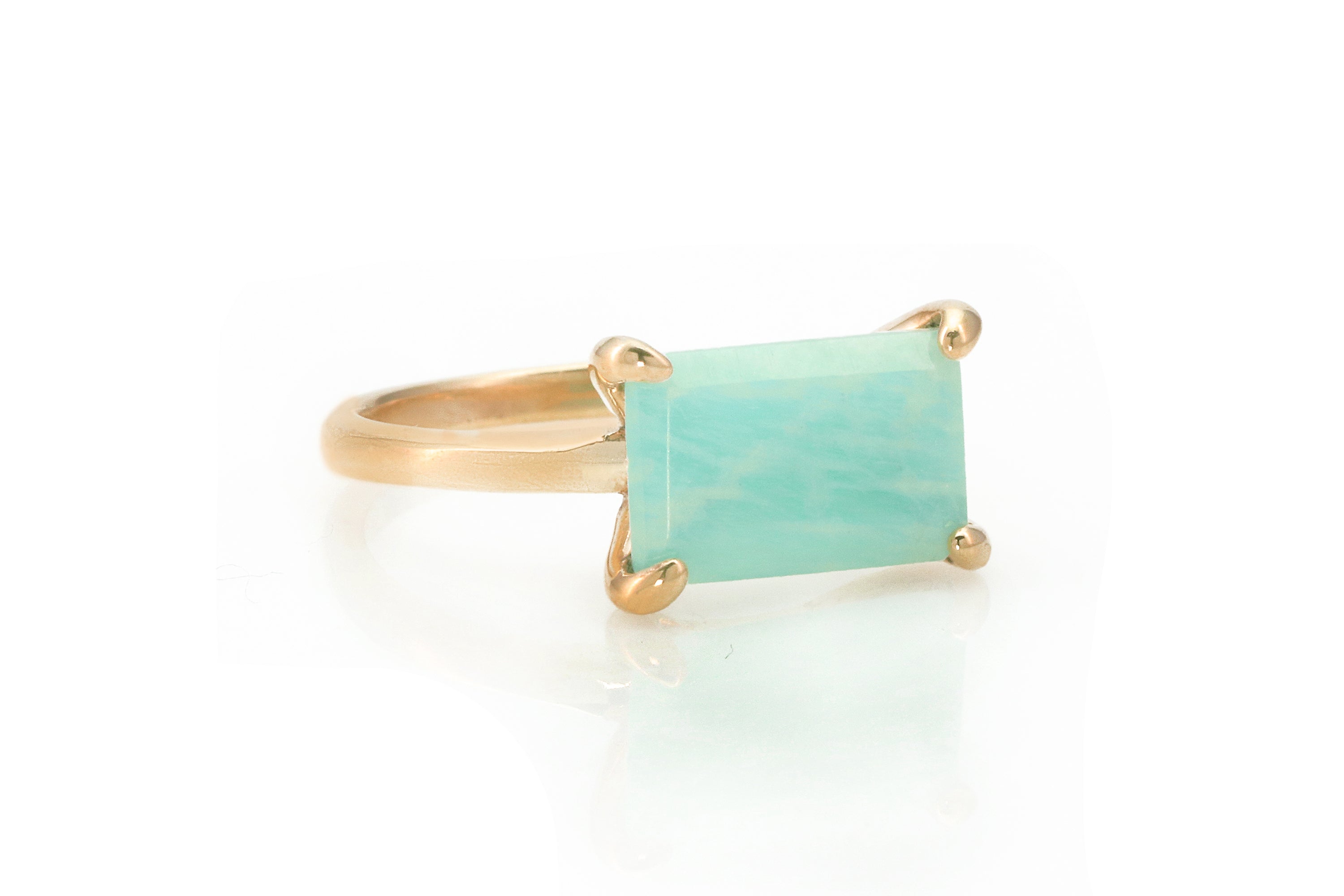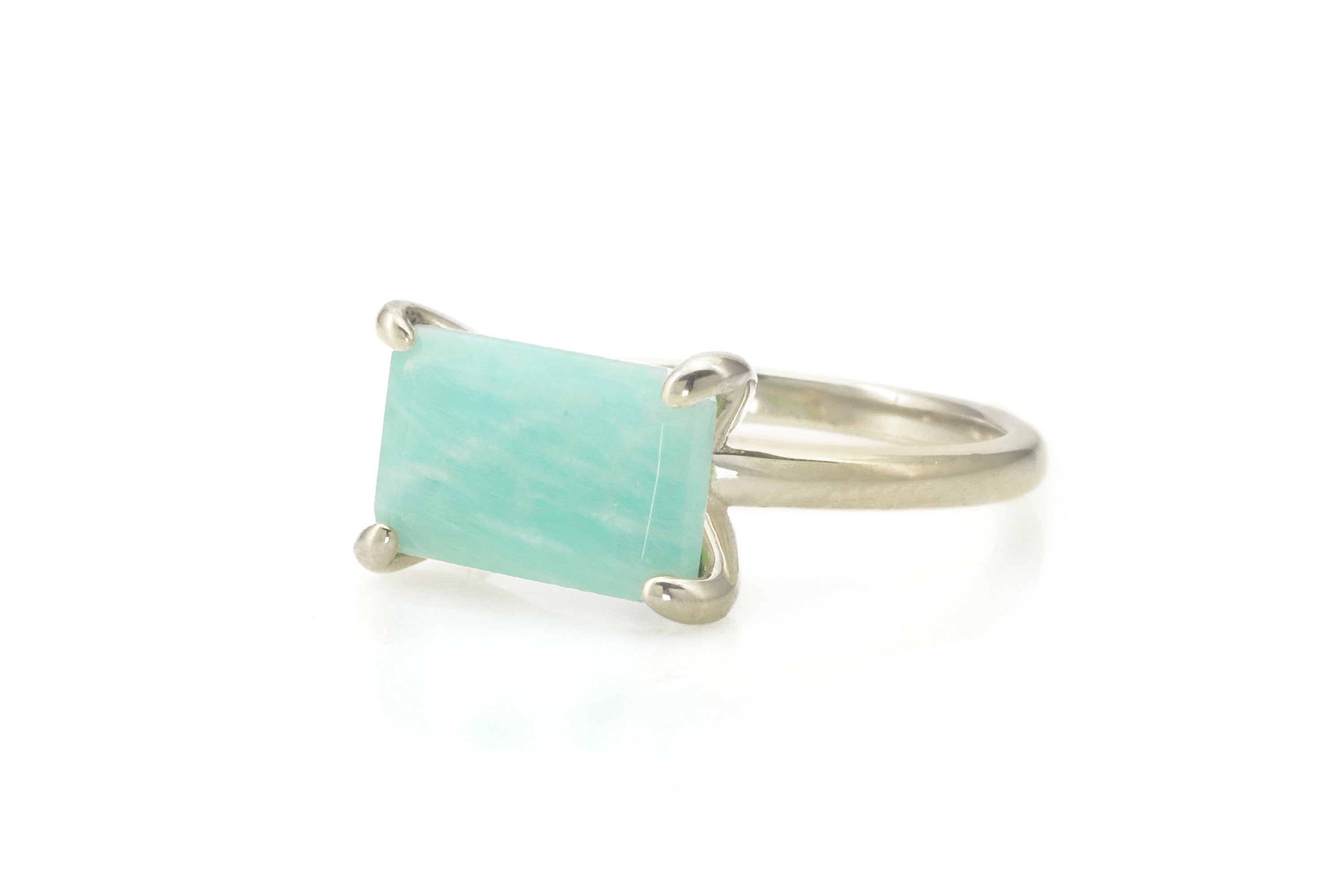 A stunning stone ring that flaunts the exceptional beauty of Amazonite. A gorgeous creation that you can wear on its own or with other stackable rings. A lovely gift jewelry for a lady who loves an everyday touch of sophistication and unique charm.