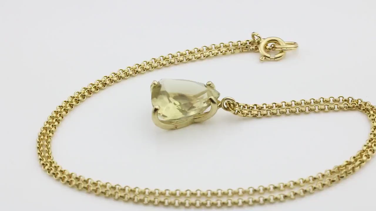 Yellow Quartz Trillion Gem Pendant Necklace